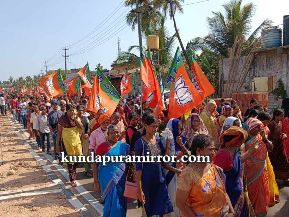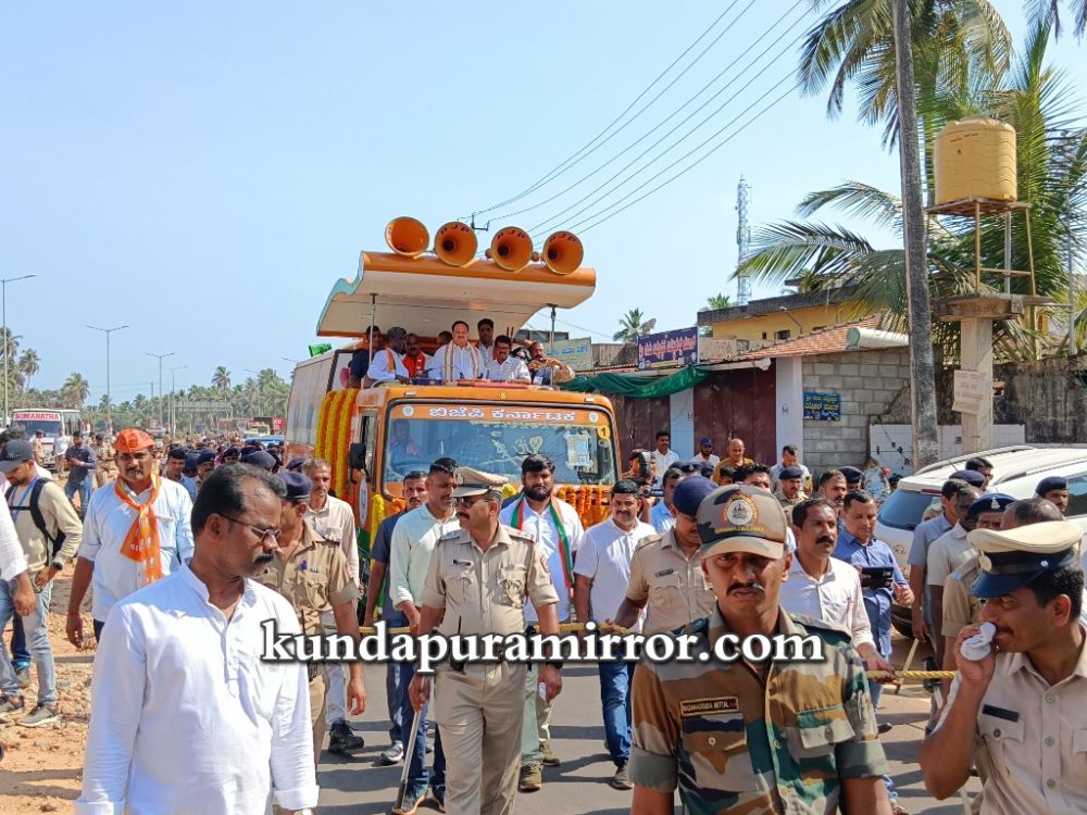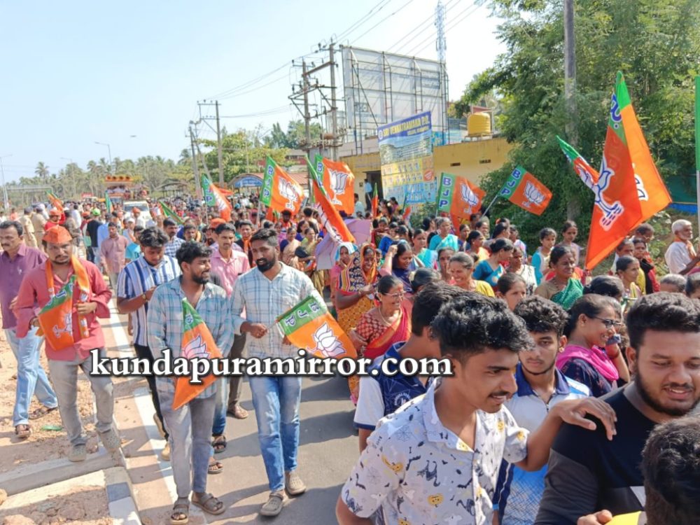 ಸಚಿವ ಕೋಟ ಶ್ರೀನಿವಾಸ ಪೂಜಾರಿ, ಶಾಸಕ ಹಾಲಾಡಿ ಶ್ರೀನಿವಾಸ ಶೆಟ್ಟಿ, ಕುಂದಾಪುರ ವಿಧಾನಸಭಾ ಅಭ್ಯರ್ಥಿ ಕಿರಣ್ ಕುಮಾರ್ ಕೊಡ್ಗಿ, ಬಿಜೆಪಿ ಜಿಲ್ಲಾಧ್ಯಕ್ಷ ಕುಯಿಲಾಡಿ ಸುರೇಶ್ ನಾಯಕ್, ಕುಂದಾಪುರ ಬಿಜೆಪಿ ಮಂಡಲ ಅಧ್ಯಕ್ಷ ಶಂಕರ್ ಅಂಕದಕಟ್ಟೆ, ಮುಖಂಡರಾದ ಉದಯ್ ಕುಮಾರ್ ಶೆಟ್ಟಿ, ಶ್ಯಾಮಲ ಕುಂದರ್, ಸುಲತಾ ಹೆಗ್ಡೆ, ರಾಜು ಪೂಜಾರಿ, ಜಯೇಂದ್ರ ಪೂಜಾರಿ, ಸುರೇಶ್ ಕುಂದರ್, ಸುರೇಶ್ ಶೆಟ್ಟಿ ,ಸತೀಶ್ ಪೂಜಾರಿ,ಸತೀಶ್ ಬಾರಿಕೆರೆ ಮತ್ತಿತರರು ಉಪಸ್ಥಿತರಿದ್ದರು. ಕಾರ್ಯಕ್ರಮವನ್ನು ಬಿಜೆಪಿ ಮುಖಂಡ ಬೈಕಾಡಿ ಸುಪ್ರಸಾದ್ ಶೆಟ್ಟಿ ನಿರೂಪಿಸಿದರು.ಈ ಮೊದಲು ಸಾಲಿಗ್ರಾಮದ ಆಂಜನೇಯ ದೇವಳದ ರಸ್ತೆ ಮೂಲಕ ರಾಷ್ಟ್ರೀಯ ಹೆದ್ದಾರಿಯ ಮೂಲಕ ಸಹಸ್ರ ಸಂಖ್ಯೆಯಲ್ಲಿ ಕಾರ್ಯಕರ್ತರು ರೋಡ್ ಶೋ ನಲ್ಲಿಭಾಗಿಯಾದರು.