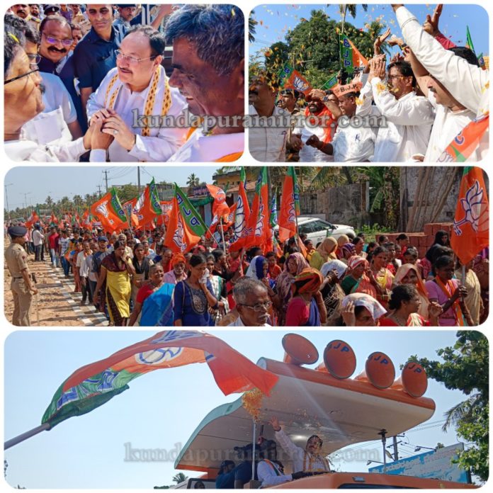 ರೋಡ್ ಶೋ ಉದ್ದಕ್ಕೂ ಬಿಜೆಪಿ ರಾಷ್ಟ್ರೀಯ ಅಧ್ಯಕ್ಷ ಜೆ.ಪಿ ನಡ್ಡಾ ಹಾಗೂ ಶಾಸಕ ಹಾಲಾಡಿ ಶ್ರೀನಿವಾಸ ಶೆಟ್ಟಿ,ಅಭ್ಯರ್ಥಿ ಕಿರಣ್ ಕುಮಾರ್ ಕೊಡ್ಗಿವರ ಪರವಾಗಿ ಕಾರ್ಯಕರ್ತರು ಘೋಷಣೆಗಳ ಮಹಾಪೂರ ಹರಿಸಿದರು. ಅದರಲ್ಲೂ ಶಾಸಕ ಹಾಲಾಡಿ ಶ್ರೀನಿವಾಸ ಶೆಟ್ಟಿ ಕಾರ್ಯಕರ್ತರ ನಡುವೆ ಕಾರ್ಯಕ್ರಮದಲ್ಲಿ ಭಾಗಿಯಾಗಿ ಗಮನ ಸೆಳೆದು ಕಾರ್ಯಕ್ರಮದ ನಂತರ ಅಭಿಮಾನಿಗಳು ಹಾಗೂ ಕಾರ್ಯಕರ್ತರ ದಂಡು ಹಾಲಾಡಿ ಶ್ರೀನಿವಾಸ ಶೆಟ್ಟಿ ನಡೆದುಹೋದ ದಾರಿ ಉದ್ದಕ್ಕೂ ರೋಡ್ ಶೋ ವಿಶೇಷವಾಗಿ ಗಮನ ಸೆಳೆಯಿತು.