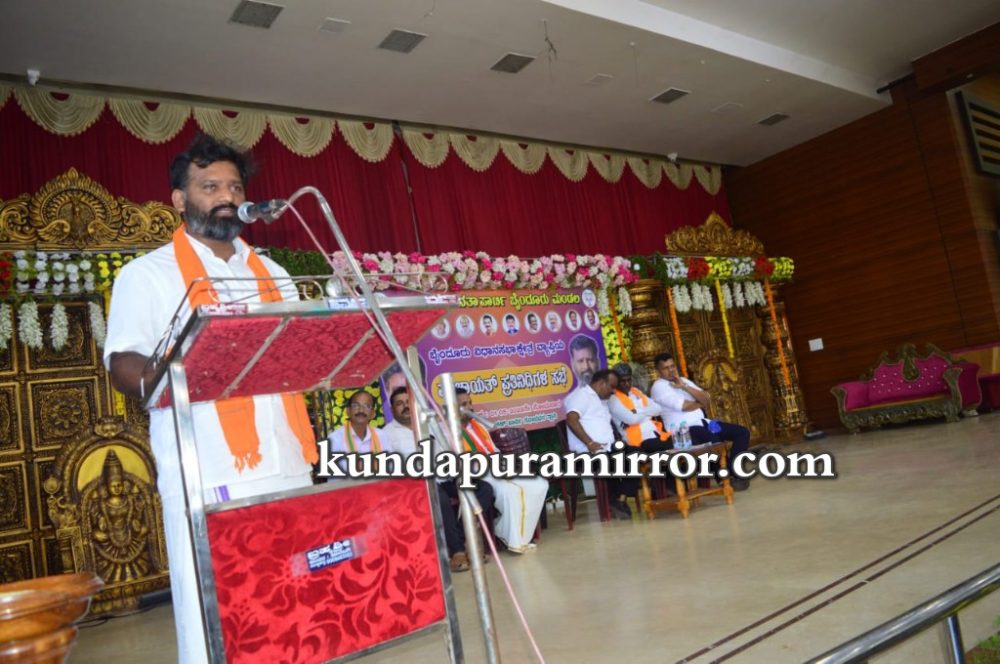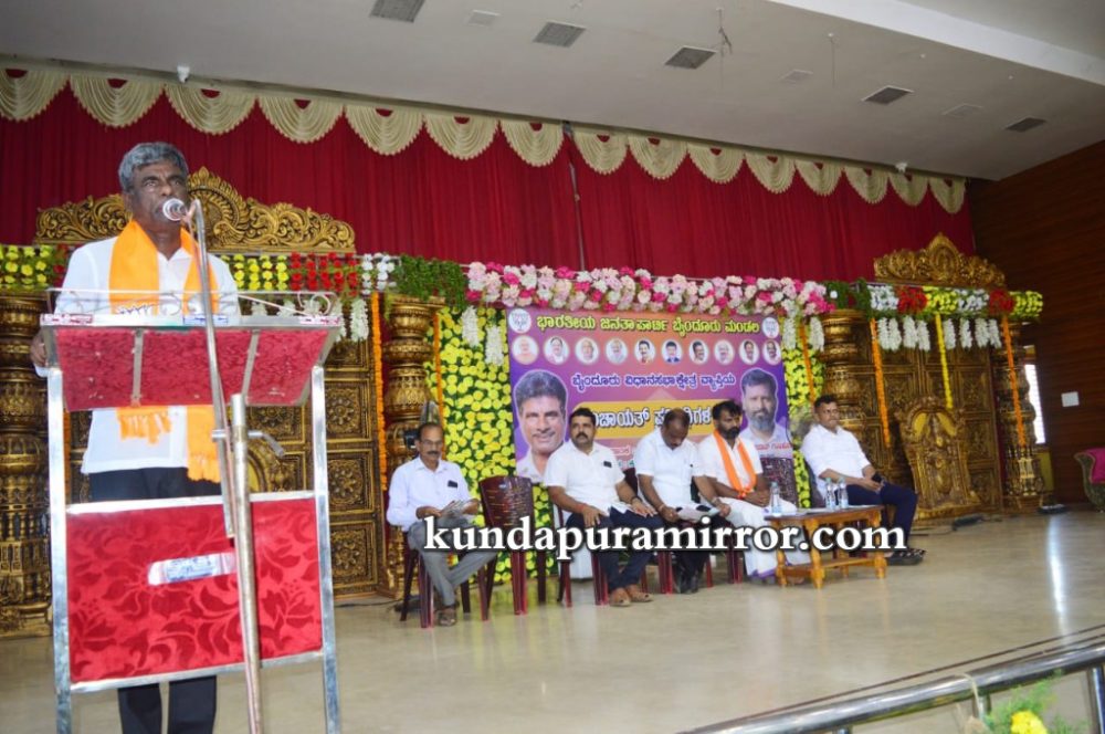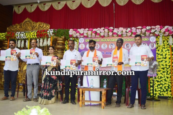 ಭಾರತೀಯ ಜನತಾ ಪಕ್ಷ ಬೈಂದೂರು ಮಂಡಲದ ವತಿಯಿಂದ ತ್ರಾಸಿಯ ಕೊಂಕಣ ಖಾರ್ವಿ ಸಭಾಭವನದಲ್ಲಿ ನಡೆದ ಪಂಚಾಯತ್ ಪ್ರತಿನಿಧಿಗಳ ಸಮಾವೇಶದಲ್ಲಿ ಪಕ್ಷದ ಬೈಂದೂರು ಕ್ಷೇತ್ರದ ಪ್ರನಾಳಿಕೆ ಬಿಡುಗಡೆ ಮಾಡಿ ಮಾತನಾಡಿದರು.
