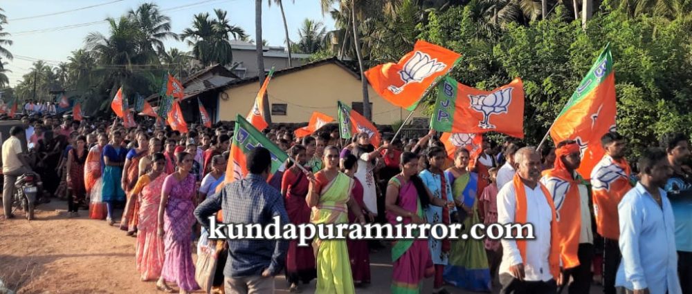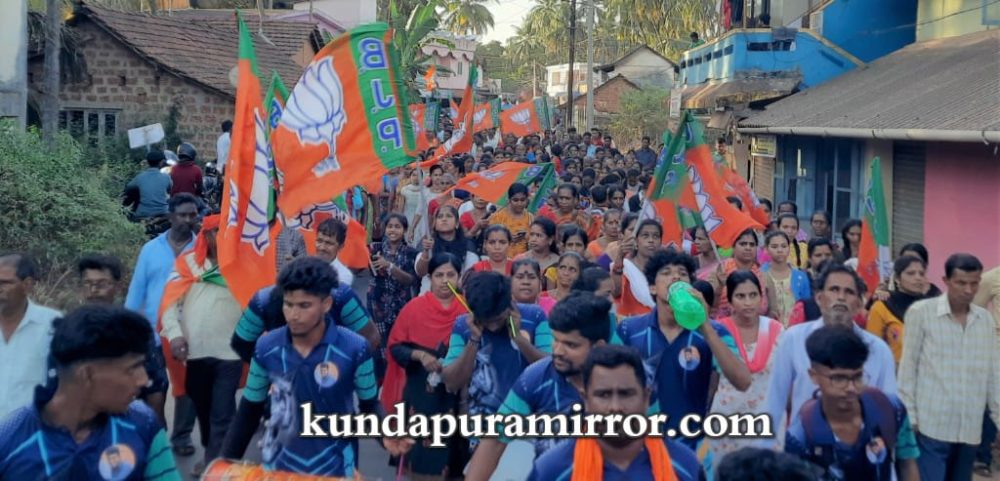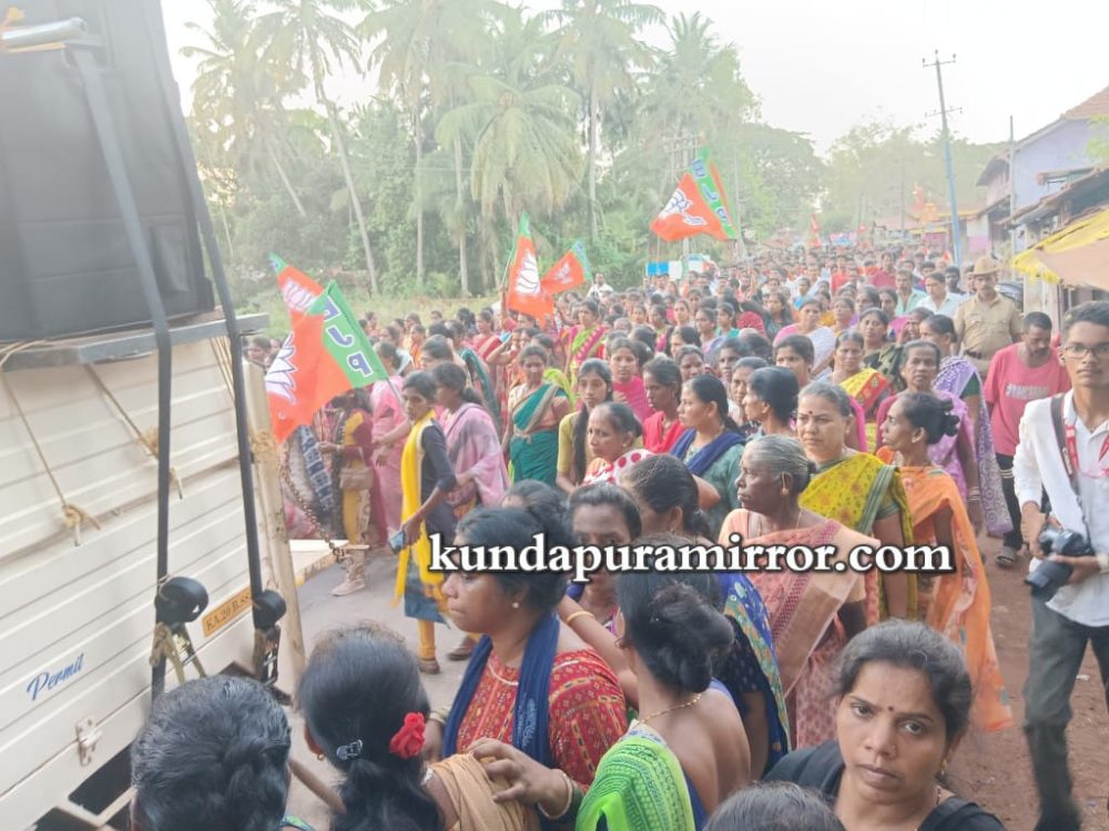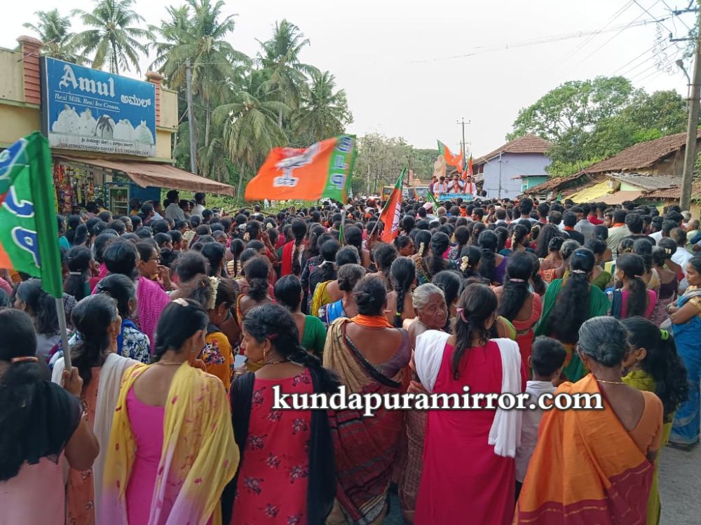 ಗಂಗೊಳ್ಳಿಯ ಶ್ರೀ ರಾಮ ಮಂದಿರದ ಬಳಿಯಿಂದ ಗಂಗೊಳ್ಳಿ ಬಂದರು ಬಸ್ ನಿಲ್ದಾಣದ ತನಕ ಸುಮಾರು 2 ಕಿ.ಮೀ. ಬೃಹತ್ ರೋಡ್ ಶೋ ನಡೆಯಿತು. ಸಹಸ್ರಾರು ಸಂಖ್ಯೆಯಲ್ಲಿ ಆಗಮಿಸಿದ್ದ ಮಹಿಳೆಯರ ಹಾಗೂ ಯುವ ಕಾರ್ಯಕರ್ತರ ಜಯಘೋಷ ಮುಗಿಲು ಮುಟ್ಟಿತ್ತು.