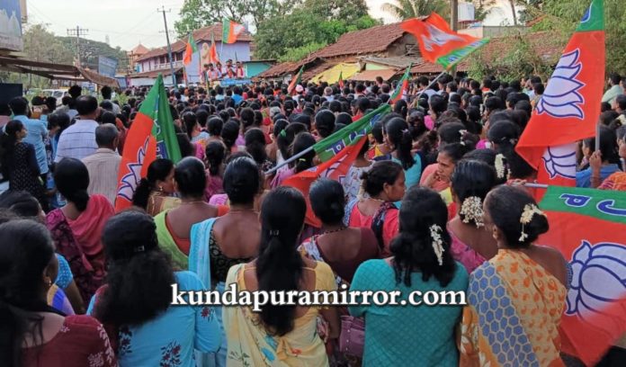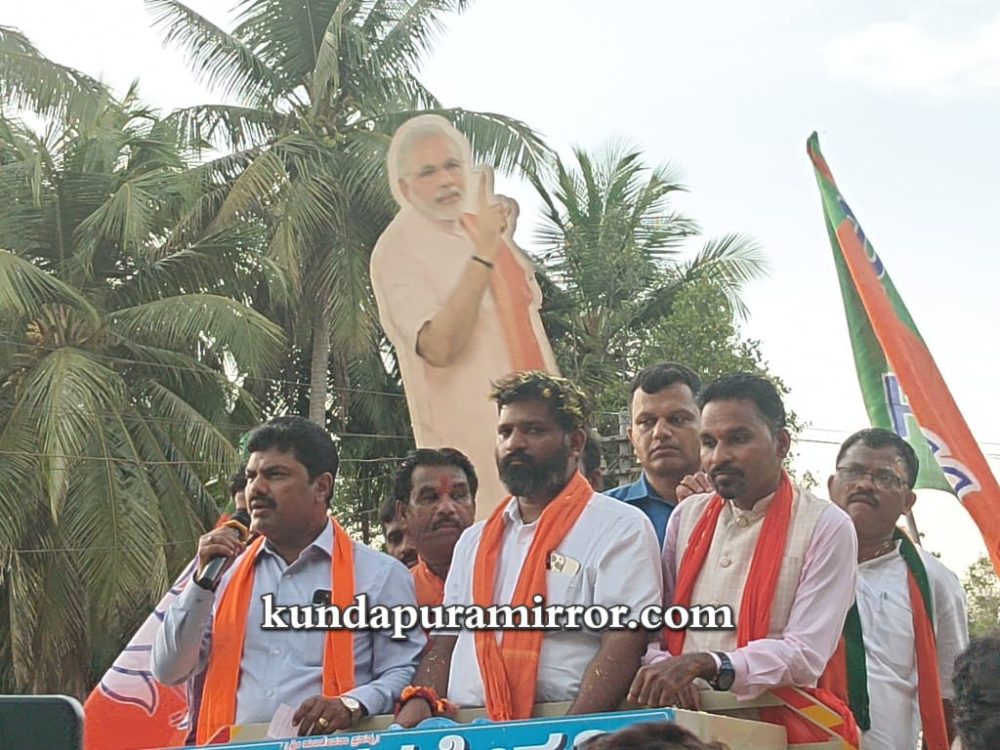ಗಂಗೊಳ್ಳಿಯಲ್ಲಿ ಬಿಜೆಪಿ ಅಭ್ಯರ್ಥಿ ಗುರುರಾಜ್ ಗಂಟಿಹೊಳೆ ಪರವಾಗಿ ಬುಧವಾರ ಬೈಂದೂರು ವಿಧಾನಸಭಾ ಚುನಾವಣಾ ಪ್ರಚಾರದ ಬೃಹತ್ ರೋಡ್ ಶೋದಲ್ಲಿ ಪಾಲ್ಗೊಂಡು ಅವರು ಮಾತನಾಡಿದರು.