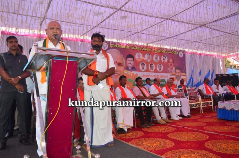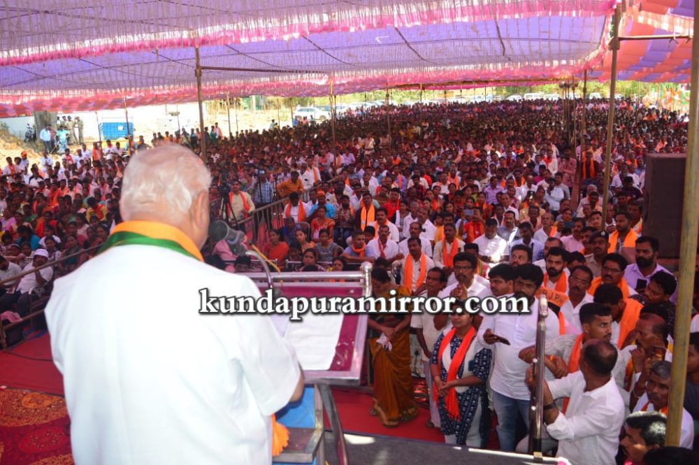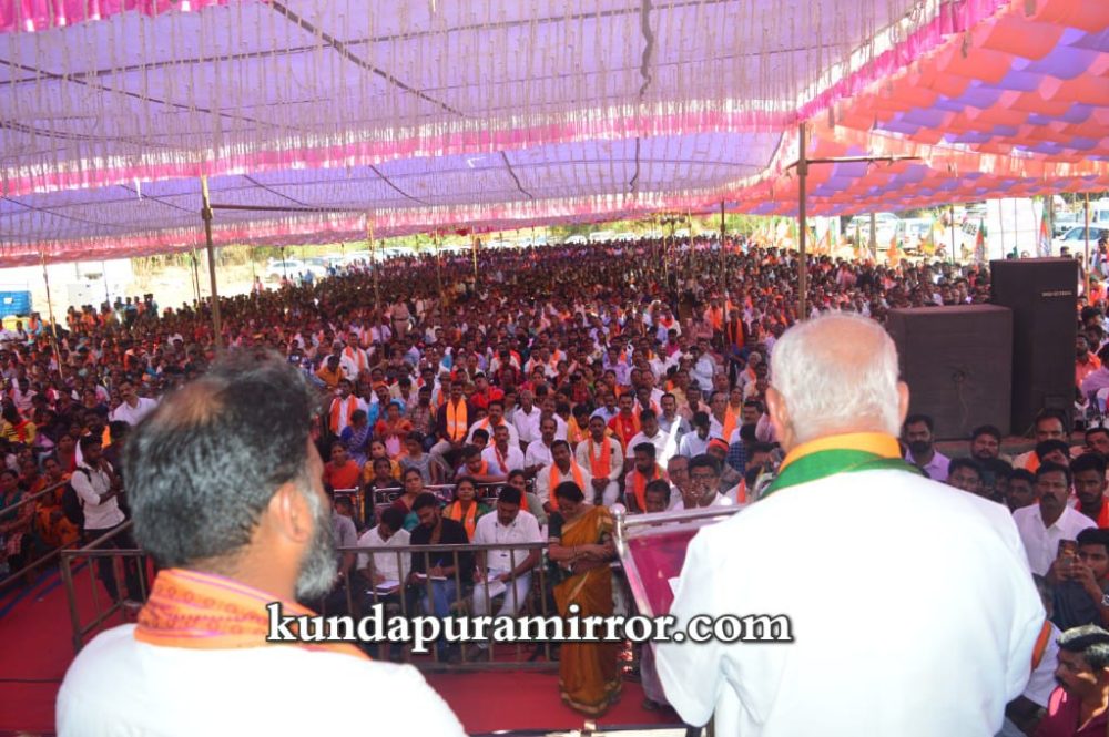 ಬೈಂದೂರು :ವಂಡ್ಸೆ ಬೈಂದೂರು ವಿಧಾನಸಭಾ ಕ್ಷೇತ್ರ ಸೇರಿದಂತೆ ರಾಜ್ಯದಲ್ಲಿ 130ರಿಂದ 135 ಕ್ಷೇತ್ರಗಳನ್ನು ಗೆಲ್ಲುವ ಮೂಲಕ ಬಿಜೆಪಿ ಸ್ಪಷ್ಟ ಬಹುಮತದೊಂದಿಗೆ ಸರ್ಕಾರ ರಚನೆ ಮಾಡಲಿದೆ. ಹಾಗೆಯೇ ಬೈಂದೂರು ಬಿಜೆಪಿ ಅಭ್ಯರ್ಥಿ ಗುರುರಾಜ ಗಂಟಿಹೊಳೆಯವರು 25 ರಿಂದ 30 ಸಾವಿರ ಮತಗಳ ಅಂತರದಲ್ಲಿ ಜಯ ಸಾಧಿಸಲಿದ್ದಾರೆ ಎಂದು ಮಾಜಿ ಮುಖ್ಯಮಂತ್ರಿ ಬಿ.ಎಸ್ ಯಡಿಯೂರಪ್ಪ ಹೇಳಿದರು.