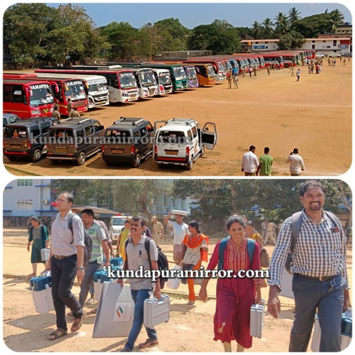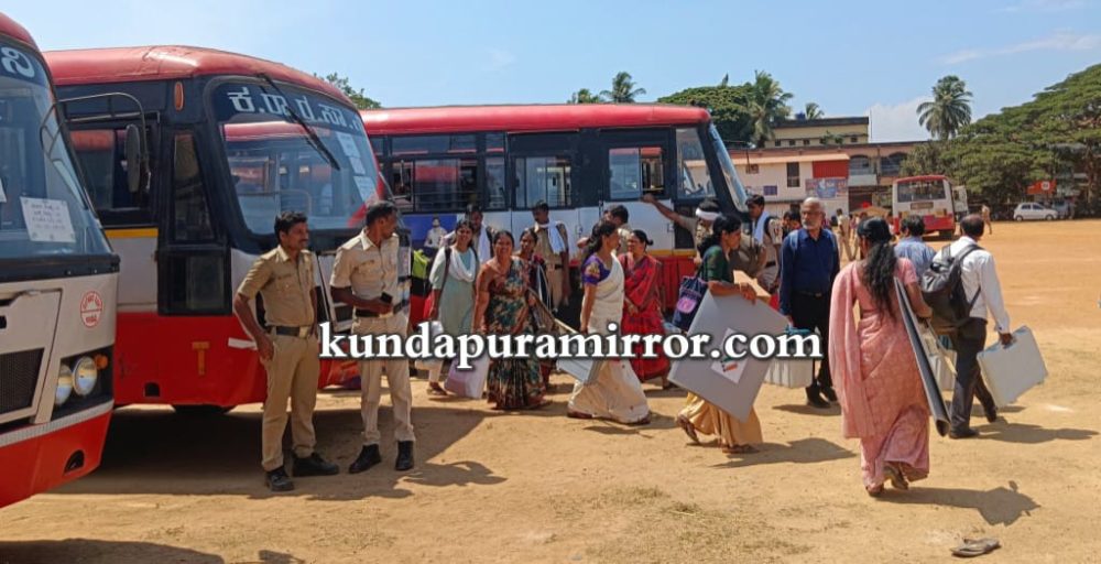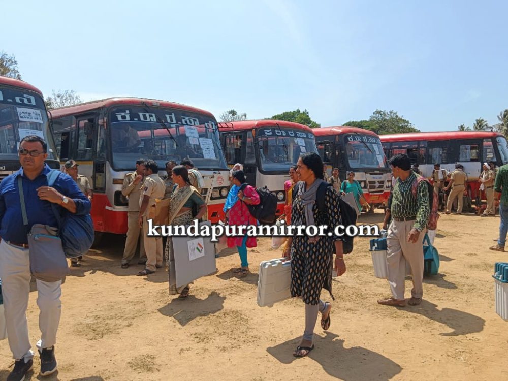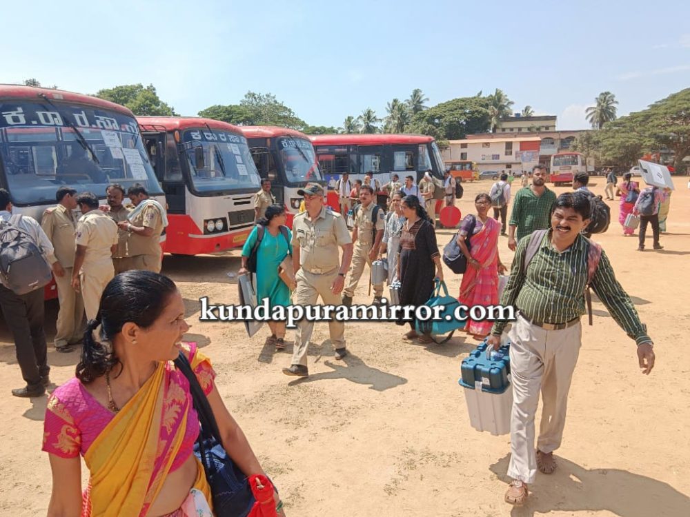 ಚುನಾವಣೆಯ ಕರ್ತವ್ಯದಲ್ಲಿ ಭಾಗವಹಿಸುವ ಅಧಿಕಾರಿಗಳು ಮತಯಂತ್ರ, ಮತದಾನ ಪ್ರಕ್ರಿಯೆಗೆ ಬೇಕಾಗುವ ಎಲ್ಲ ಪರಿಕರಗಳೊಂದಿಗೆ ಮತಗಟ್ಟೆಗಳಿಗೆ ತೆರಳಿದರು. ಚುನಾವಣಾ ಕರ್ತವ್ಯ ನಿರ್ವಹಿಸುವ ಅಧಿಕಾರಿಗಳಿಗೆ ಮತದಾನ ಕೇಂದ್ರಕ್ಕೆ ತೆರಳಲು ಹಾಗೂ ಮರಳಿ ಬರಲು ಬಸ್ಸು 32, ಮಿನಿಬಸ್ಸು 8, ಟೆಂಪೋ ಟ್ರಾವೆಲ್ಲರ್, ಮ್ಯಾಕ್ಸಿಕ್ಯಾಬ್ ವ್ಯಾನ್ 12, ಜೀಪ್ 11 ವ್ಯವಸ್ಥೆ ಮಾಡಲಾಗಿತ್ತು.