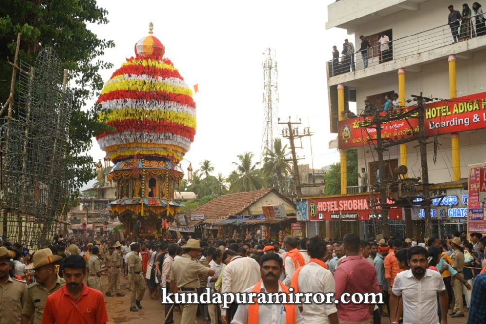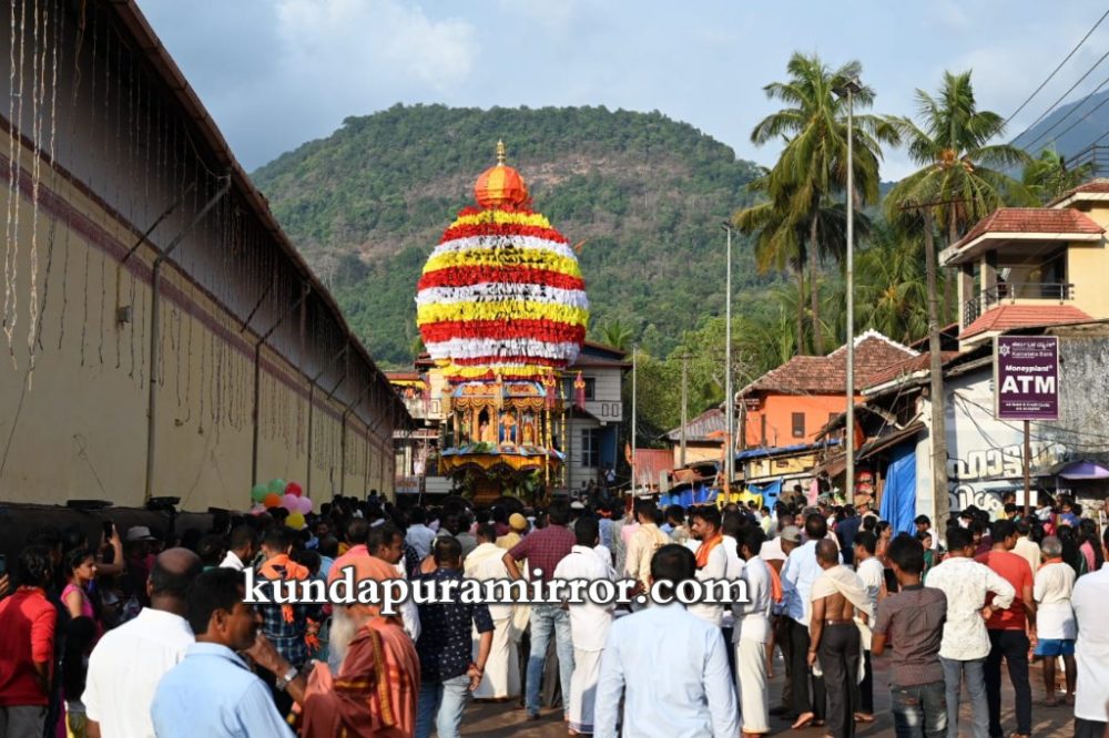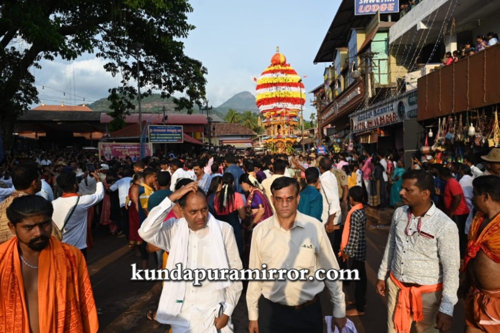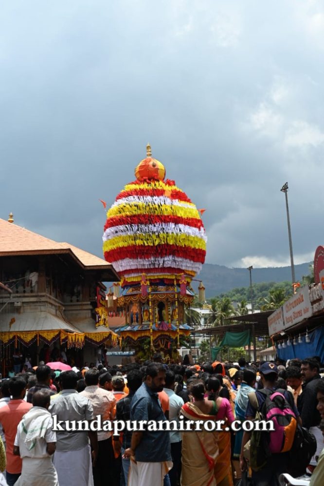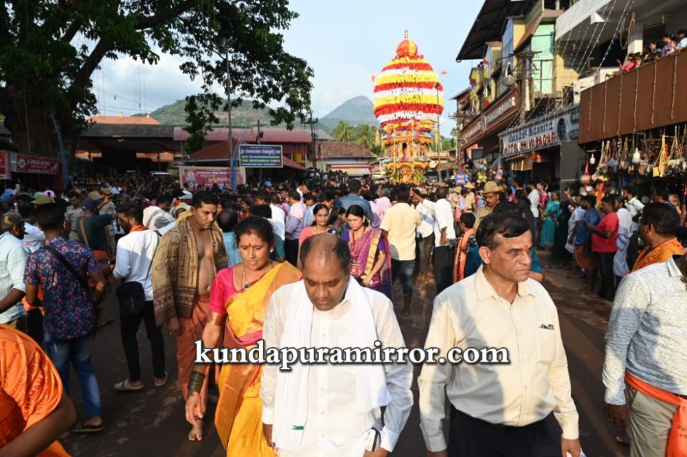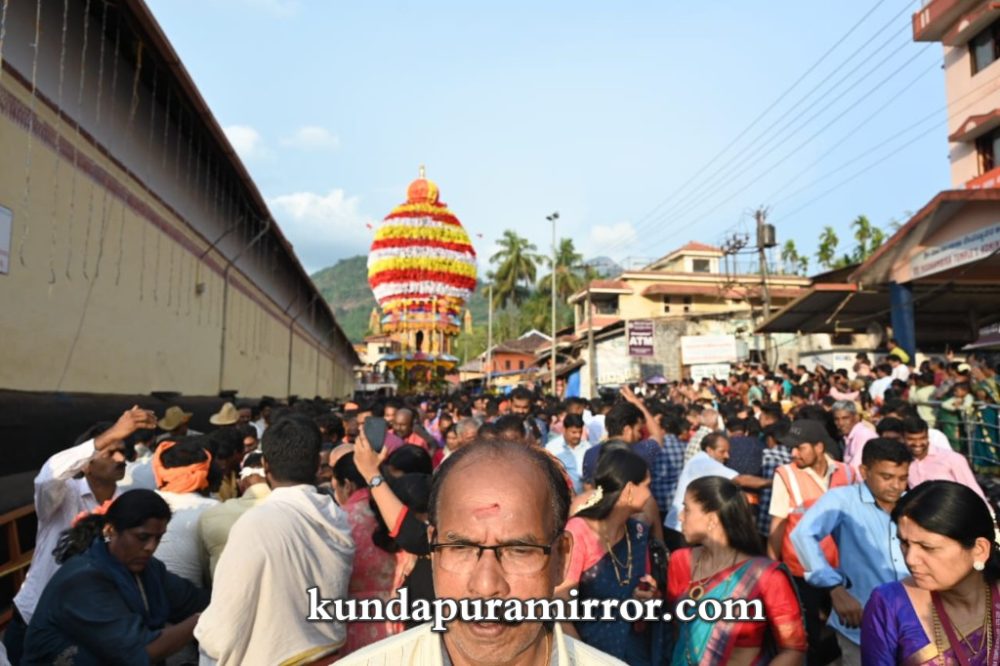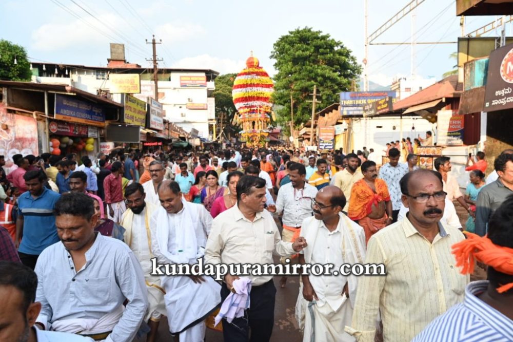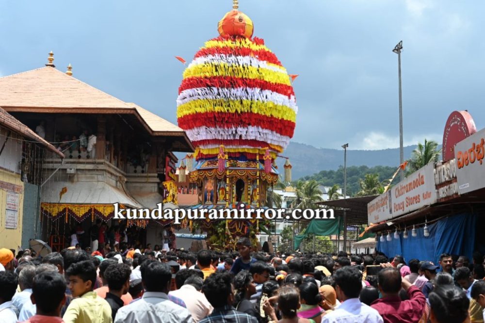 ಕುಂದಾಪುರ : ಪುರಾಣ ಹಾಗೂ ಇತಿಹಾಸ ಪ್ರಸಿದ್ದವಾದ ಕೊಲ್ಲೂರಿನ ಶ್ರೀ ಮೂಕಾಂಬಿಕಾ ದೇವಸ್ಥಾನದಲ್ಲಿ ಈಚೆಗೆ ನಡೆದ ಅಷ್ಟಬಂಧ ಹಾಗೂ ಬ್ರಹ್ಮ ಕಲಶೋತ್ಸವದ ನಂತರದ ಧಾರ್ಮಿಕ ವಿಧಿಯ ಅಂಗವಾಗಿ ಶ್ರೀ ಮೂಕಾಂಬಿಕಾ ದೇವಿಯ ವೈಭವದ ಶ್ರೀ ಮನ್ಮಹಾರಥೋತ್ಸವ ಮಂಗಳವಾರ ವೈಭವದಿಂದ ನಡೆಯಿತು.