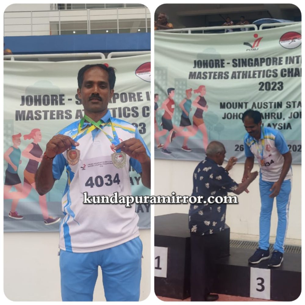 ಕೋಟ: ಮಲೇಷಿಯಾದಲ್ಲಿ ನಡೆದ ಜೋಹಾರ್ ಸಿಂಗಾಪುರ್ ಅಂತಾರಾಷ್ಟ್ರೀಯ ಮಾಸ್ಟರ್ ಅಥ್ಲೇಟಿಕ್ ಕ್ರೀಡಾ ಕೂಟದಲ್ಲಿ ಕೋಟದ ದಿನೇಶ್ ಗಾಣಿಗ ಇವರಿಗೆ ಒಂದು ಬೆಳ್ಳಿ,ಒಂದು ಕಂಚಿನ ಪದಕ ತನ್ನದಾಗಿಸಿಕೊಂಡಿದ್ದಾರೆ.