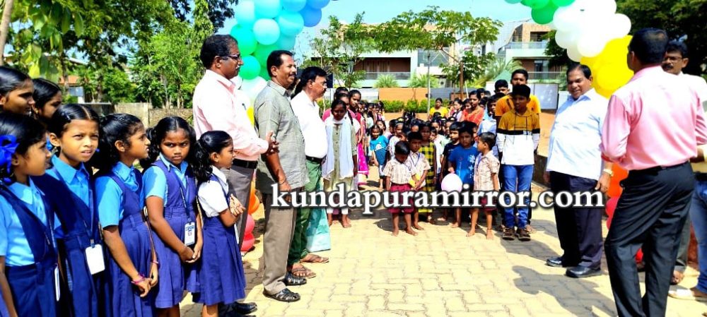 ಶಾಲೆಯ ಮಹಾಪೋಷಕ ಗೀತಾನಂದ ಫೌಂಡೇಶನ್ ಪ್ರವರ್ತಕ ಆನಂದ್ ಸಿ ಕುಂದರ್ ಮಕ್ಕಳಿಗೆ ಸಿಹಿ ತಿಂಡಿ ನೀಡಿ ನಗುವಿನೊಂದಿಗೆ ಬರಮಾಡಿಕೊಂಡರು.