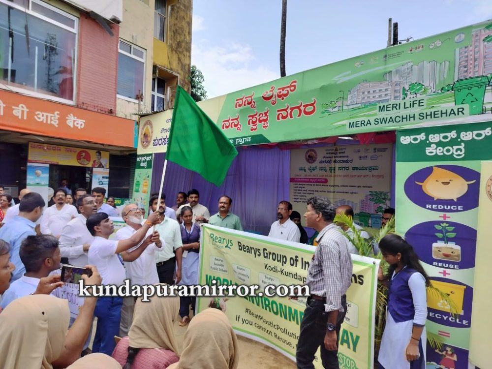 ಕುಂದಾಪುರ :ಬ್ಯಾರೀಸ್ ಸಮೂಹ ಶಿಕ್ಷಣ ಸಂಸ್ಥೆಗಳು ಕೋಡಿ ಮತ್ತು ಕುಂದಾಪುರ ಪುರಸಭೆಯ ಜಂಟಿ ಆಶ್ರಯದಲ್ಲಿ ಕುಂದಾಪುರ ಪುರಸಭೆಯ ಮುಂಭಾಗದಲ್ಲಿ ಬ್ಯಾರೀಸ್ ಶಿಕ್ಷಣ ಸಂಸ್ಥೆಗಳ ಅಧ್ಯಕ್ಷರಾದ ಹಾಜಿ ಕೆ.ಎಂ ಅಬ್ದುಲ್ ರೆಹಮಾನ್ ಹಾಗೂ ಪುರಸಭಾ ಮುಖ್ಯ ಕಾರ್ಯ ನಿರ್ವಹಣಾಧಿಕಾರಿ ಮಂಜುನಾಥ್ ವಿಶ್ವ ಪರಿಸರ ದಿನದ ಜಾಥಾಕ್ಕೆ ಚಾಲನೆ ನೀಡಿ “ಜೀವ ಜಗತ್ತಿನಲ್ಲಿ ಯಾವುದೇ ಜೀವಿಗಳಿಂದಲೂ ಪರಿಸರ ನಾಶವಾಗುತ್ತಿಲ್ಲ; ಬುದ್ದಿಜೀವಿ ಮಾನವ ಸ್ವಾರ್ಥ ಪರನಾಗಿ ಸುಂದರ ಪರಿಸರವನ್ನು ನಾಶಗೊಳಿಸುವುದರೊಂದಿಗೆ ಜೀವ ಜಗತ್ತಿಗೆ ಆಪತ್ತಾಗಿದ್ದಾನೆ ” ಎಂದು ಪ್ರಸ್ತುತ ಪರಿಸ್ಥಿತಿಯ ಕುರಿತು ನುಡಿದರು.