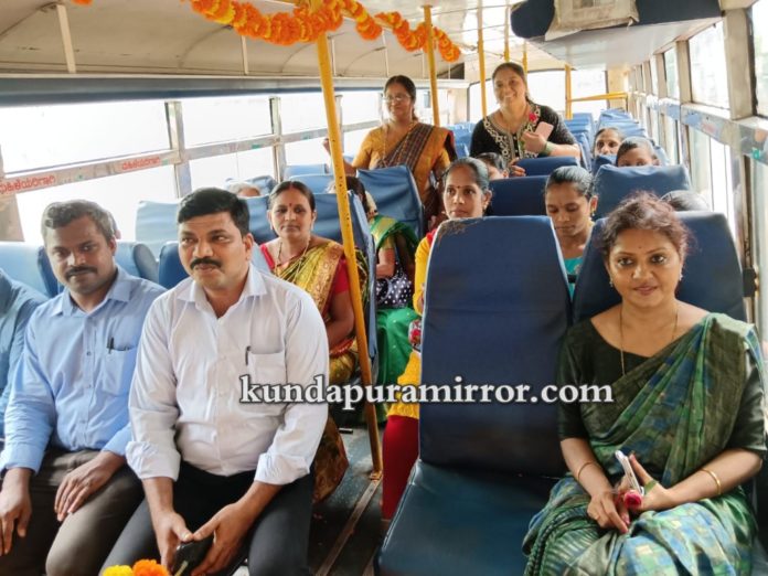 ಬಳಿಕ “ಶಕ್ತಿ” ಯೋಜನೆಯ ಅಂಗವಾಗಿ ಶೃಂಗರಿಸಿದ್ದ ಬಸ್ಸಿಗೆ ಕಟ್ಟಲಾಗಿದ್ದ ರಿಬ್ಬನ್ ಕಟ್ ಮಾಡುವ ಮೂಲಕ ಅಧಿಕೃತ ಚಾಲನೆ ನೀಡಲಾಯಿತು. ಬಳಿಕ ತಹಸೀಲ್ದಾರ್ ಶೋಭಾಲಕ್ಷ್ಮೀ ಸೇರಿದಂತೆ ಐವತ್ತಕ್ಕೂ ಹೆಚ್ಚು ಮಹಿಳೆಯರು ಎರಡು ಬಸ್ಸುಗಳಲ್ಲಿ ಕುಂದಾಪುರದ ಬಸ್ ನಿಲ್ದಾಣದಿಂದ ತ್ರಾಸಿ ವರೆಗೆ ಪ್ರಯಾಣಿಸಿ ವಾಪಾಸ್ಸಾಗುವ ಮೂಲಕ ಉಚಿತ ಪ್ರಯಾಣವನ್ನು ಖಚಿತಗೊಳಿಸಿದರು.