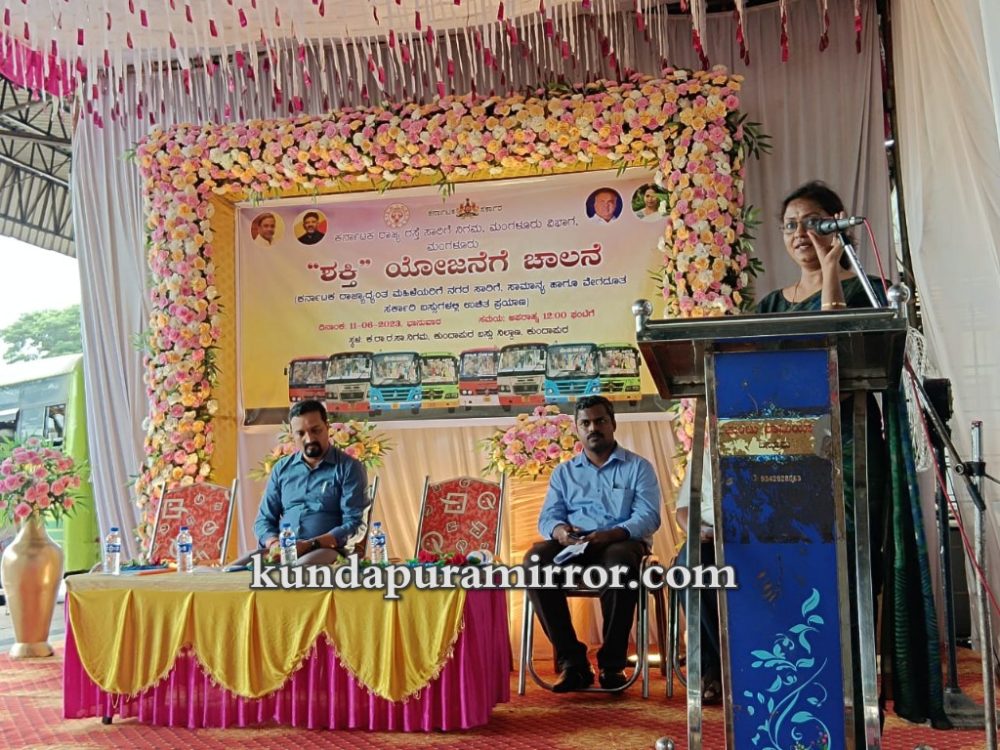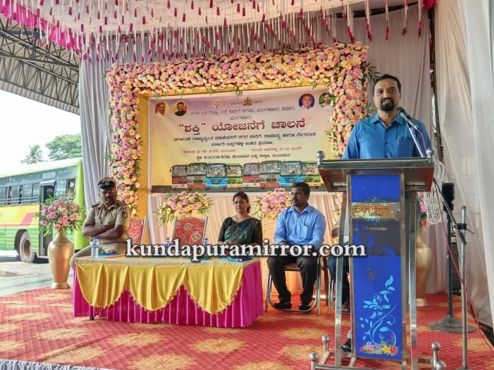 ಅವರು ಕರ್ನಾಟಕ ರಾಜ್ಯ ರಸ್ತೆ ಸಾರಿಗೆ ನಿಗಮ ಮಂಗಳೂರು ವಿಭಾಗದ ವತಿಯಿಂದ ಕರ್ನಾಟಕದಾದ್ಯಂತ ಮಹಿಳೆಯರಿಗೆ ನಗರ ಸಾರಿಗೆ, ಸಾಮಾನ್ಯ ಹಾಗೂ ವೇಗದೂರತ ಸರ್ಕಾರೀ ಬಸ್ ಗಳಲ್ಲಿ ಉಚಿತ ಪ್ರಯಾಣ “ಶಕ್ತಿ ಯೋಜನೆ” ಯನ್ನು ಕುಂದಾಪುರ ಸರ್ಕಾರೀ ಬಸ್ ನಿಲ್ದಾಣದಲ್ಲಿ ಉದ್ಘಾಟಿಸಿ ಮಾತನಾಡಿದರು.