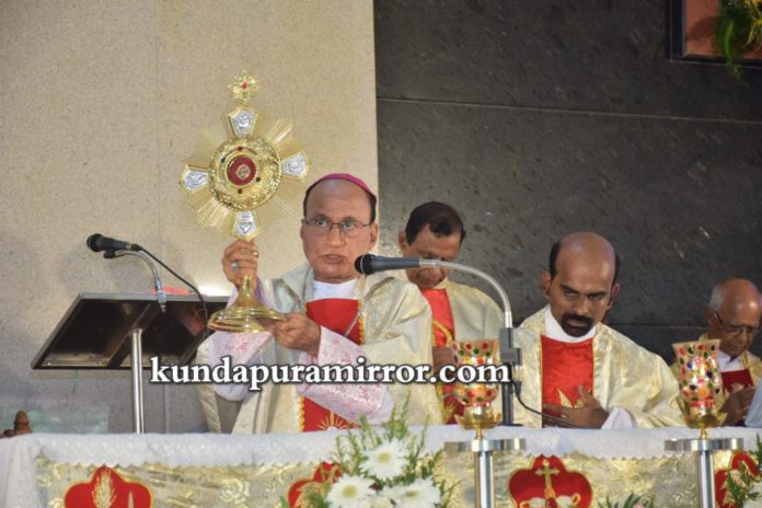 ಕುಂದಾಪುರ: ಸಂತ ಅಂತೋನಿಯವರ ಪುಣ್ಯ ಕ್ಷೇತ್ರ ಹೊಸಂಗಡಿ ಸಮೀಪದ ಕೆರೆಕಟ್ಟೆಯಲ್ಲಿ ವಾರ್ಷಿಕ ಹಬ್ಬ ಮಂಗಳವಾರದಂದು ಬಹಳ ವಿಜೃಂಭಣೆಯಿಂದ ನಡೆಯಿತು. ದಿವ್ಯ ಬಲಿಪೂಜೆಯನ್ನು ಉಡುಪಿ ಧರ್ಮ ಪ್ರಾಂತ್ಯದ ಪರಮ ಪೂಜ್ಯ ಬಿಷಪ್ ಜೆರಾಲ್ಡ್ ಐಸಾಕ್ ಲೋಬೋ ನೇರವೇರಿಸಿದರು.