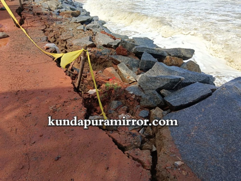 ಕಳೆದ ಒಂದು ವಾರದಿಂದ ಕಡಲ ಕೊರತೆ ಕಾಣಿಸಿಕೊಂಡಿದ್ದು ನಿನ್ನೆಯಿಂದ ಅದು ಭೀಕರ ರೂಪ ತಾಳಿದೆ. ಕಳೆದ ವರ್ಷ ಕಡಲ್ಕೊರೆತದಿಂದ ಸಾಕಷ್ಟು ಹಾನಿಯಾದ ಹೊರ ಬಂದರು ಸಮೀಪದಲ್ಲಿಯೇ ಮತ್ತೆ ಅಪಾಯ ಎದುರಾಗಿದೆ. ರಕ್ಕಸ ಗಾತ್ರದ ಅಲೆಗಳು ದಡಕ್ಕೆ ಅಪ್ಪಳಿಸುತ್ತಿದ್ದು ವಿದ್ಯುತ್ ಕಂಬ, ತೆಂಗಿನ ಮರಗಳು ಸೇರಿದಂತೆ ಸಮುದ್ರ ತೀರ ಪ್ರದೇಶದಲ್ಲಿ ತಡೆಗೆ ಅಡ್ಡ ಹಾಕಿದ ಕಲ್ಲುಗಳು ಕೊಚ್ಚಿಕೊಂಡು ಹೋಗುತ್ತಿದೆ. ಕರಾವಳಿ ರಸ್ತೆ ಬಿರುಕು ಕಾಣಿಸಿಕೊಂಡಿದ್ದು ಆತಂಕ ಹುಟ್ಟಿಸಿದೆ.