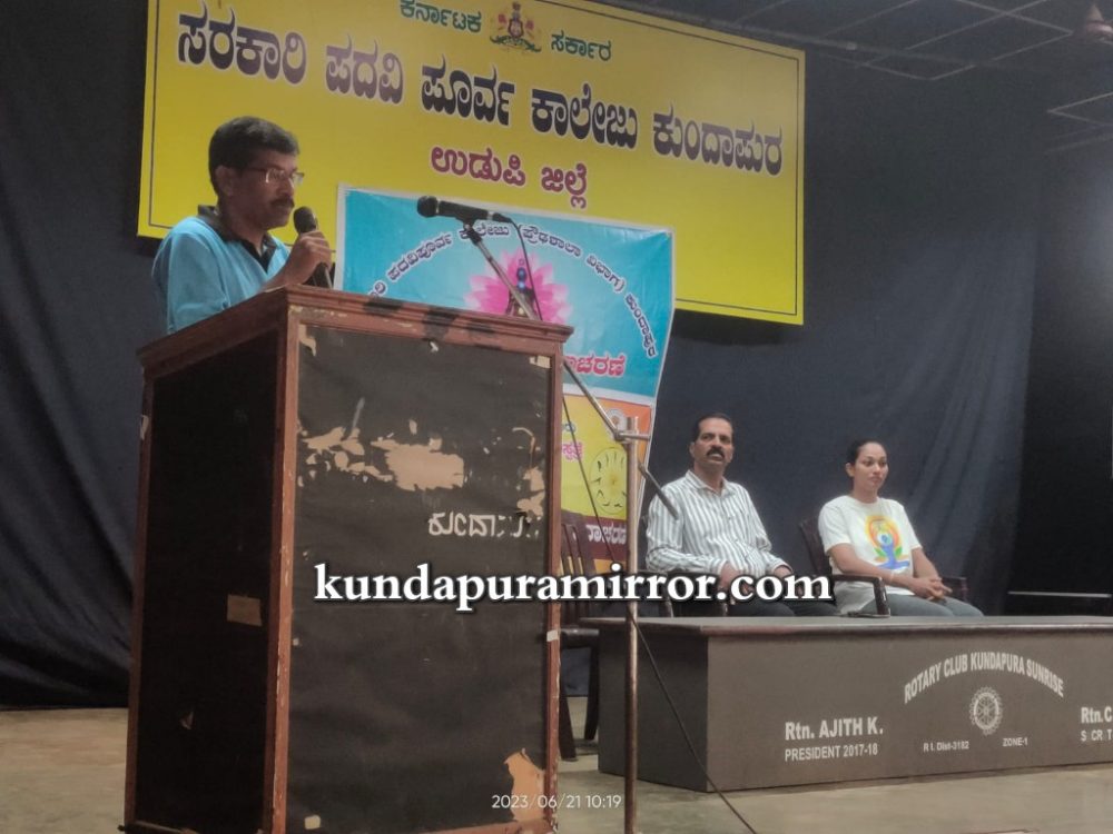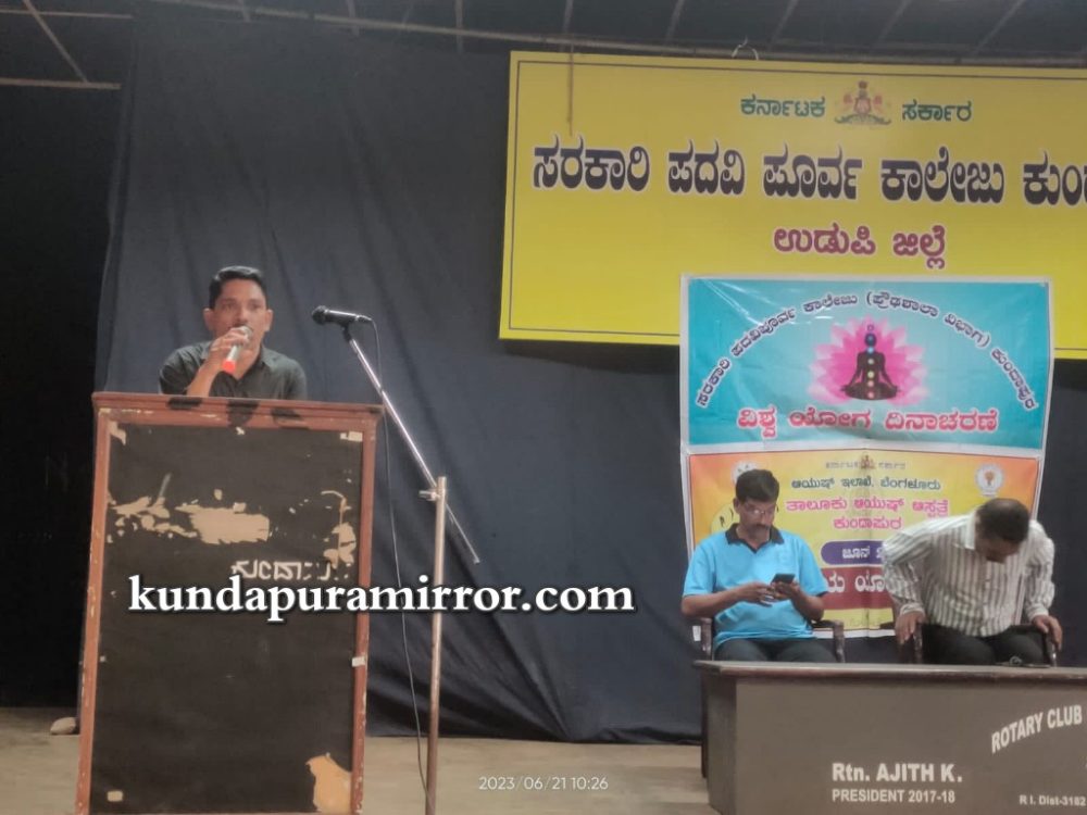 ಕುಂದಾಪುರ :ಸರಕಾರಿ ಪದವಿ ಪೂರ್ವ ಕಾಲೇಜು, ಪ್ರೌಢಶಾಲಾ ವಿಭಾಗ ಕುಂದಾಪುರ ಇಲ್ಲಿ ವಿಶ್ವ ಯೋಗ ದಿನಾಚರಣೆಯ ಪ್ರಯುಕ್ತ ವಸುದೈವ ಕುಟುಂಬಕಂ ಆಚರಿಸಲಾಯಿತು.