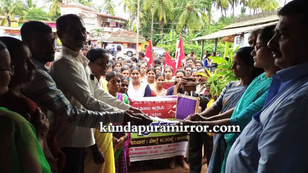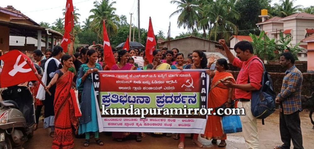ಕುಂದಾಪುರ ಕಟ್ಟಡ ಕಾರ್ಮಿಕರ ಸಂಘದ ತಾಲೂಕು ಪ್ರಧಾನ ಕಾರ್ಯದರ್ಶಿ ಸಂತೋಷ್ ಹೆಮ್ಮಾಡಿ ಮಾತನಾಡಿ ರಾಜ್ಯ ಸರ್ಕಾರದ ಮಹತ್ವಾಕಾಂಕ್ಷಿ ಯೋಜನೆಯಲ್ಲೊಂದಾದ ಶಕ್ತಿ ಯೋಜನೆ ಆಲೂರಿನ ಮಹಿಳೆಯರಿಗೆ ಸರಕಾರಿ ಬಸ್ಸಿಲ್ಲದೇ ವಂಚನೆಯಾಗುತ್ತಿದ್ದು ಸೌಲಭ್ಯಗಳನ್ನು ಪಡೆಯಲು ಜಿಲ್ಲಾಧಿಕಾರಿ ಕಚೇರಿ ಎದುರು ಹೋರಾಟಕ್ಕೆ ಅಣಿಯಾಗಬೇಕು ಎಂದು ಕರೆ ನೀಡಿದರು.