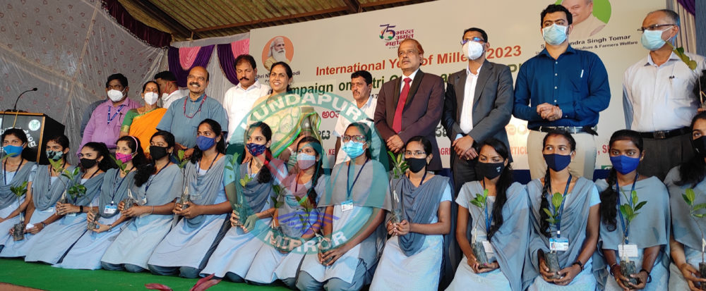 ಅವರು ಇಂದು ಬ್ರಹ್ಮಾವರದ ಕೃಷಿ ವಿಜ್ಞಾನ ಕೇಂದ್ರದಲ್ಲಿ, ಕೆಳದಿ ಶಿವಪ್ಪ ನಾಯಕ ಕೃಷಿ ಮತ್ತು ತೋಟಗಾರಿಕೆ ವಿಜ್ಞಾನಗಳ ವಿಶ್ವವಿದ್ಯಾನಿಲಯ ಶಿವಮೊಗ್ಗ, ಭಾರತೀಯ ಕೃಷಿ ಅನುಸಂಧಾನ ಪರಿಷತ್ ನವದೆಹಲಿ, ಐ.ಸಿ.ಎ.ಆರ್-ಕೃಷಿ ವಿಜ್ಞಾನ ಕೇಂದ್ರ ಬ್ರಹ್ಮಾವರ, ವಲಯ ಕೃಷಿ ಮತ್ತು ತೋಟಗಾರಿಕೆ ಸಂಶೋಧನಾ ಕೇಂದ್ರ ಬ್ರಹ್ಮಾವರ ಇವರ ಸಂಯುಕ್ತಾಶ್ರಯದಲ್ಲಿ ಆಯೋಜಿಸಲಾದ, ಅಂತಾರಾಷ್ಟ್ರೀಯ ಸಿರಿಧಾನ್ಯ ವರ್ಷ 2023 ಪೌಷ್ಠಿಕತೋಟ ಮತ್ತು ವೃಕ್ಷಾರೋಪಣ ಪ್ರಚಾರಾಂದೋಲನ ಕಾರ್ಯಕ್ರಮವನ್ನು, ಮಹಿಳೆಯರ ಮಡಿಲಿಗೆ ಸಿರಿಧಾನ್ಯಗಳನ್ನು ತುಂಬಿಸುವ ಮೂಲಕ ಉದ್ಘಾಟಿಸಿ ಮಾತನಾಡಿದರು.