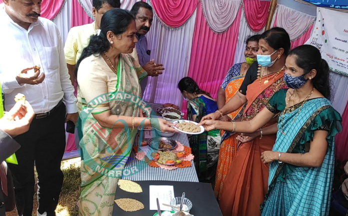 ಇದೇ ಸಂದರ್ಭದಲ್ಲಿ ಸಿರಿಧಾನ್ಯಗಳಿಂದ ತಯಾರಿಸಿದ ವಿವಿಧ ಉತ್ಪನ್ನಗಳು ಮತ್ತು ಸಿರಿಧಾನ್ಯಗಳ ಕುರಿತ ವಸ್ತು ಪ್ರದರ್ಶನವನ್ನು ಉದ್ಘಾಟಿಸಿದ ಸಚಿವರು, ಪೌಷ್ಠಿಕತೋಟ ಮತ್ತು ವೃಕ್ಷಾರೋಪಣ ಪ್ರಚಾರಾಂದೋಲನ ಅಂಗವಾಗಿ ಗಿಡಗಳನ್ನು ವಿತರಿಸಿದರು.