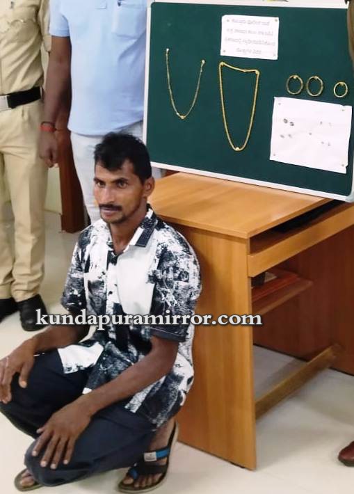ಆರೋಪಿ ಎಗರಿಸಿದ್ದ ಎನ್ನಲಾದ 7½ ಪವನ್ ಚಿನ್ನದ ಚೈನ್, 3 ಪವನ್ ತೂಕದ ಎರಡು ಚಿನ್ನದ ಬಳೆ, 1½ ಪವನ್ ಚಿನ್ನದ ಚೈನ್, ½ ಪವನ್ ಚಿನ್ನದ ಬಳೆ, 1 ಪವನ್ ತೂಕದ 4 ಜೊತೆ ಚಿನ್ನದ ಕಿವಿ ಓಲೆ ಸಹಿತ ಒಟ್ಟು 13½ ಪವನ್ (108 ಗ್ರಾಂ) ಚಿನ್ನಾಭರಣಗಳನ್ನು ವಶಕ್ಕೆ ಪಡೆಯಲಾಗಿದೆ.