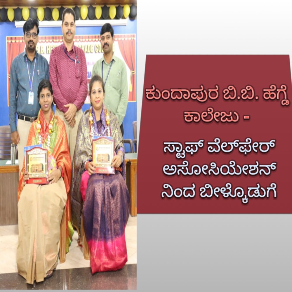ಕುಂದಾಪುರ : ಡಾ| ಬಿ. ಬಿ. ಹೆಗ್ಡೆ ಪ್ರಥಮ ದರ್ಜೆ ಕಾಲೇಜಿನ ಸ್ಟಾಫ್ ವೆಲ್ಫೇರ್ ಅಸೋಸಿಯೇಶನ್ ಆಯೋಜಿಸಿದ ಸಿಬ್ಬಂದಿಗಳ ಬೀಳ್ಕೊಡುಗೆ ಸಮಾರಂಭದಲ್ಲಿ ಕಾಲೇಜಿನ ಪಾಂಶುಪಾಲರಾದ ಪ್ರೊ| ಕೆ. ಉಮೇಶ್ ಶೆಟ್ಟಿ ಅಧ್ಯಕ್ಷತೆ ವಹಿಸಿ, ಸಂಸ್ಥೆಯಲ್ಲಿ ಸೇವೆ ಸಲ್ಲಿಸಿ ಸಂಸ್ಥೆಯ ಶ್ರೇಯೋಭಿವೃದ್ಧಿಗೆ ಸಹಕರಿಸಿದ ಇಬ್ಬರು ಉಪಾನ್ಯಾಸಕರನ್ನು ಶ್ಲಾಘಿಸಿದರು.
