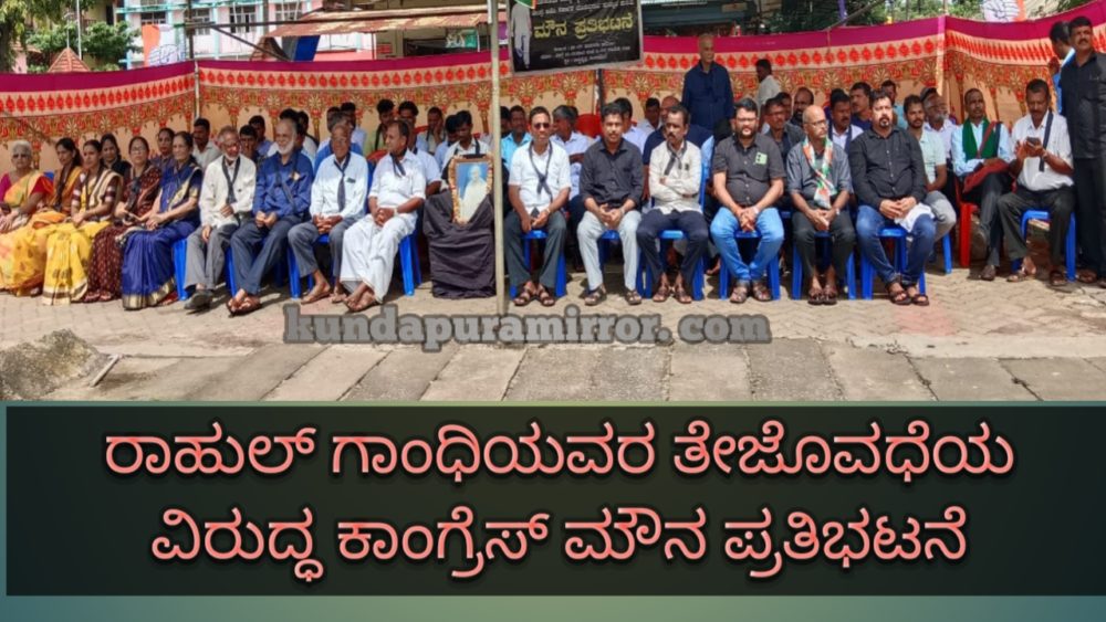 ಕುಂದಾಪುರ: ರಾಹುಲ್ ಗಾಂಧಿಯವರ ತೇಜೊವಧೆಯ ವಿರುದ್ಧ ಬ್ಲಾಕ್ ಕಾಂಗ್ರೆಸ್ ಸಮಿತಿ ಕುಂದಾಪುರ ನೇತೃತ್ವದಲ್ಲಿ ಜು.12ರಂದು ಕುಂದಾಪುರ ಶಾಸ್ತ್ರಿ ವೃತ್ತದ ಬಳಿಯಲ್ಲಿ ಮೌನ ಪ್ರತಿಭಟನೆ ನಡೆಯಿತು.