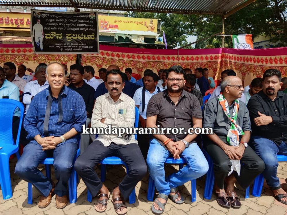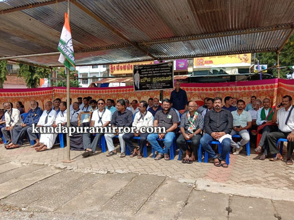 ರಾಷ್ಟ್ರವ್ಯಾಪ್ತಿ ಮೌನ ಪ್ರತಿಭಟನೆಗೆ ಪಕ್ಷ ಕರೆ ನೀಡಿರುವ ಹಿನ್ನೆಲೆಯಲ್ಲಿ ಕುಂದಾಪುರದಲ್ಲಿ ಕೂಡಾ ಪ್ರತಿಭಟನಾನಿರತರು ಕುತ್ತಿಗೆಗೆ ಕಪ್ಪು ಪಟ್ಟಿ ಧರಿಸಿ ಮೌನ ಪ್ರತಿಭಟನೆ ನಡೆಸಿದರು.