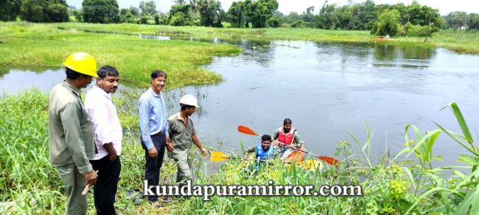 ಕೋಟ: ಕಳೆದ ವಾರ ಸುರಿದ ಬಾರಿ ಗಾಳಿ ಮಳೆಗೆ ಇಲ್ಲಿನ ಕೋಟ ಮೆಸ್ಕಾಂ ವ್ಯಾಪ್ತಿಯ ಚಿತ್ರಪಾಡಿ ಪರಿಸರದ ಹಡಲು ಬಿದ್ದ ಪ್ರದೇಶ ವಿದ್ಯುತ್ ಕಂಬಗಳು ಹಾನಿಗೊಂಡಿದ್ದು ಬಾರಿ ಪ್ರಮಾಣದಲ್ಲಿ ನೀರು ಹರಿಯುತ್ತಿರಯವ ಹಿನ್ನಲ್ಲೆಯಲ್ಲಿ ಕೋಟ ಮೆಸ್ಕಾಂ ವಿಭಾಗದಲ್ಲಿ ಕಾರ್ಯನಿರ್ವಹಿಸುವ ಪವರ್ಮೆನ್ಗಳು ಕಯಾಕಿಂಗ್ ದೋಣಿಯ ಮೂಲಕ ಸರಿಪಡಿಸಲಾಯಿತು, ಪರಿಸರದ ಹತ್ತಾರು ಮನೆಗಳಿಗೆ ಸಂಪರ್ಕಿಸುವ ಈ ವಿದ್ಯುತ್ ತಂತಿ ಹಾನಿಗೊಂಡ ದಿಸೆಯಲ್ಲಿ ಮೆಸ್ಕಾಂ ಸಹಾಯಕ ಇಂಜಿನಿಯರ್ ಪ್ರಶಾಂತ್ ಶೆಟ್ಟಿ ನೇತೃತ್ವದಲ್ಲಿ ಸರಿಪಡಿಸುವ ಕಾರ್ಯ ಸೋಮವಾರ ನಡೆಯಿತು.