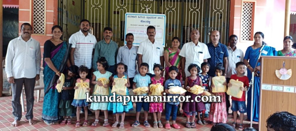 ಕುಂದಾಪುರ :ಸರಕಾರಿ ಹಿರಿಯ ಪ್ರಾಥಮಿಕ ಶಾಲೆ ಕೊಂಡಳ್ಳಿ, ಕುಂದಾಪುರ ತಾಲೂಕು ಇಲ್ಲಿನ ಹಳೆ ವಿದ್ಯಾರ್ಥಿ ಸಂಘದ ಅಧ್ಯಕ್ಷರು ಹಾಗೂ ಗ್ರಾಮ ಪಂಚಾಯತ್ ಸದಸ್ಯರಾದ ಶಂಕರನಾರಾಯಣ ಭಟ್ ಕೊಂಡಳ್ಳಿಯವರು ಅಂಗನವಾಡಿ ಹಾಗೂ ಶಾಲಾ ವಿದ್ಯಾರ್ಥಿಗಳಿಗೆ ನೀಡಿದ ಉಚಿತ ನೋಟ್ ಪುಸ್ತಕ ಹಾಗೂ ಲೇಖನ ಸಾಮಗ್ರಿ ವಿತರಣ ಸಮಾರಂಭವು ಗ್ರಾಮ ಪಂಚಾಯತ್ ಅಧ್ಯಕ್ಷೆ ಗೀತಾ ಇವರ ಅಧ್ಯಕ್ಷತೆಯಲ್ಲಿ ನಡೆಯಿತು.