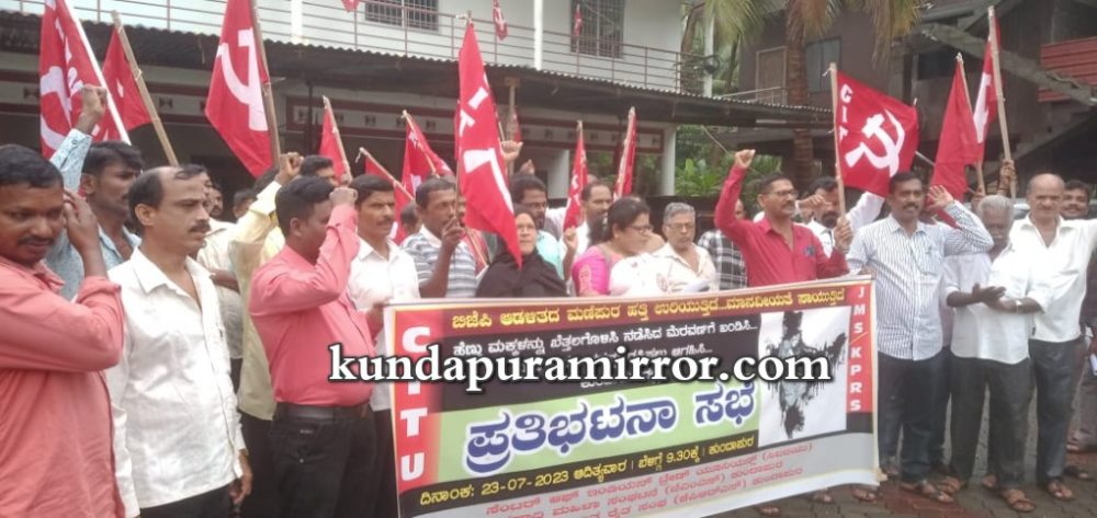 ಕುಂದಾಪುರ: ಮೇ 04 ರಂದು ಕುಕಿ ಸಮುದಾಯದ ಮೇಲೆ ನಡೆಯುತ್ತಿರುವ ದೌರ್ಜನ್ಯ ಮಹಿಳೆಯರ ಅತ್ಯಾಚಾರ, ಕೊಲೆಗಳನ್ನು ಖಂಡಿಸಿ ಇಂದು ಕುಂದಾಪುರದಲ್ಲಿ ಸಿಐಟಿಯು, ಜನವಾದಿ ಮಹಿಳಾ ಸಂಘಟನೆ,ರೈತ ಸಂಘದ ಕಾರ್ಯಕರ್ತರು ಹಂಚು ಕಾರ್ಮಿಕರ ಭವನದ ಆವರಣದಲ್ಲಿ ಪ್ರತಿಭಟನಾ ಸಭೆ ನಡೆಸಿದರು.
