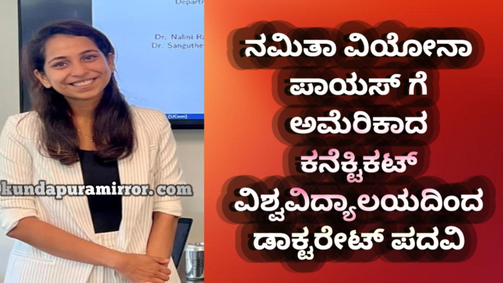 ಕುಂದಾಪುರ: ಇಲ್ಲಿನ ನಮಿತಾ ವಿಯೋನಾ ಪಾಯಸ್ ಅವರ ‘ಟಾಪಿಕ್ ಮಾಡೆಲಿಂಗ್ ಆಫ್ ಕ್ರಾಸ್-ಸೆಕ್ಷನಲ್, ರಿಪೀಟೆಡ್ ಮೆಶರ್ಸ್ ಎಂಡ್ ಟೈಮ್ ಸೀರೀಸ್ ಡೇಟಾ ಸ್ಟ್ರಕ್ಚರ್ಸ್’. ಎಂಬ ಸಂಶೋಧನಾ ಪ್ರಬಂಧಕ್ಕೆ ಅಮೆರಿಕದ ಕನೆಕ್ಟಿಕಟ್ ವಿಶ್ವವಿದ್ಯಾಲಯವು ಡಾಕ್ಟರೇಟ್ ಪದವಿ ನೀಡಿದೆ.