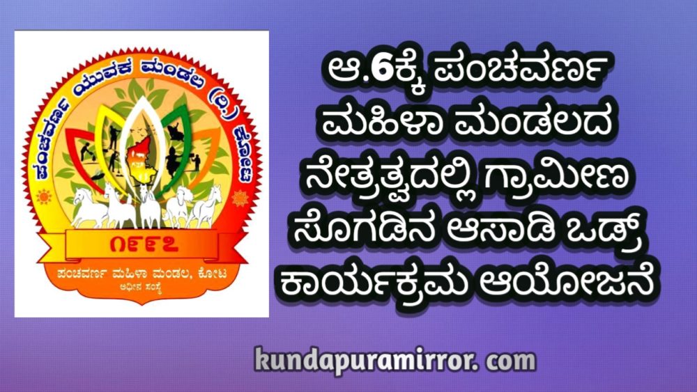 ಕೋಟ: ಕೋಟದ ಪಂಚವರ್ಣ ಯುವಕ ಮಂಡಲ ಅಧೀನ ಸಂಸ್ಥೆ ಪಂಚವರ್ಣ ಮಹಿಳಾ ಮಂಡಲದ ನೇತ್ರತ್ವದಲ್ಲಿ ಎರಡನೇ ವರ್ಷದ ಆಸಾಡಿ ಒಡ್ರ್ ಗ್ರಾಮೀಣ ಸೋಗಡಿನ ತಿಲ್ಲಾನ ಎಂಬ ಶೀರ್ಷಿಕೆಯಡಿ ಕಾರ್ಯಕ್ರಮ ಇದೇ ಭಾನುವಾರ ಆ.6ರಂದು ಪೂರ್ವಾಹ್ನ 9.ಗ ಹಂದಟ್ಟು ಗೆಳೆಯರ ಬಳಗ ಸಭಾಂಗಣದಲ್ಲಿ ನಡೆಯಲಿದೆ.