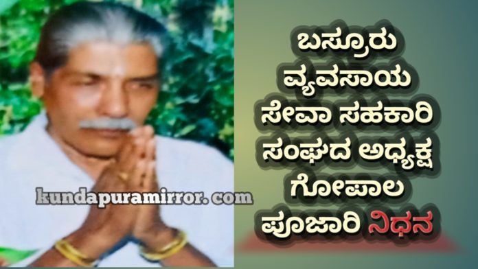 ಕುಂದಾಪುರ: ಹಿರಿಯ ಸಹಕಾರಿ ಧುರೀಣ, ಬಸ್ರೂರು ವ್ಯವಸಾಯ ಸೇವಾ ಸಹಕಾರಿ ಸಂಘದ ಅಧ್ಯಕ್ಷರು, ಬಸ್ರೂರು ಕೋಟಿ ಚೆನ್ನಯ್ಯ ಗರಡಿಯ ಮುಖ್ಯಸ್ಥರಾದ ಗೋಪಾಲ ಪೂಜಾರಿ (68ವ) ಆ.8ರಂದು ಹೃದಯಘಾತದಿಂದ ನಿಧನರಾದರು.