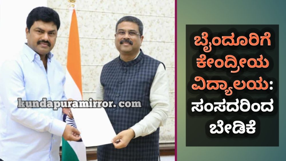 ಕುಂದಾಪುರ: ಶಿವಮೊಗ್ಗ ಲೋಕಸಭಾ ಕ್ಷೇತ್ರದ ಉಡುಪಿ ಜಿಲ್ಲೆಯ ಬೈಂದೂರು ವಿಧಾನಸಭಾ ವ್ಯಾಪ್ತಿಯಲ್ಲಿ ಕೇಂದ್ರ ಸರಕಾರದ ಕೇಂದ್ರೀಯ ವಿದ್ಯಾಲಯ ಮಂಜೂರು ಮಾಡುವಂತೆ ಸಂಸದ ಬಿ.ವೈ ರಾಘವೇಂದ್ರ ಕೇಂದ್ರ ಸಚಿವ ಧರ್ಮೇಂದ್ರ ಪ್ರಧಾನ್ ಅವರಿಗೆ ಮನವಿ ಮಾಡಿದ್ದಾರೆ.