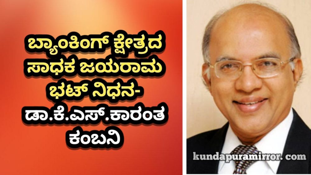 ಸುಮಾರು ನಾಲ್ಕು ದಶಕಗಳಿಗೂ ಮಿಕ್ಕಿ ಬ್ಯಾಂಕಿಂಗ್ ಕ್ಷೇತ್ರದಲ್ಲಿ ನಿಸ್ಪ್ರಹ ಸೇವೆ ಸಲ್ಲಿಸಿ, ಅಪಾರ ಜನಮನ್ನಣೆಗೆ ಪಾತ್ರರಾಗಿದ್ದ ಜಯರಾಮ ಭಟ್ಟರ ಮತ್ತು ನನ್ನ ಒಡನಾಟವು ಎರಡು ದಶಕಗಳಿಗೂ ಮಿಕ್ಕಿದ್ದಾಗಿದ್ದು ಅವರ ಅಕಾಲಿಕ ನಿಧನದಿಂದ ಸಮಾಜಕ್ಕೆ ತುಂಬಲಾರದ ನಷ್ಟವಾಗಿದೆ ಎಂದು ಡಾ.ಕೆ.ಎಸ್.ಕಾರಂತ್ ಹೇಳಿದ್ದಾರೆ.