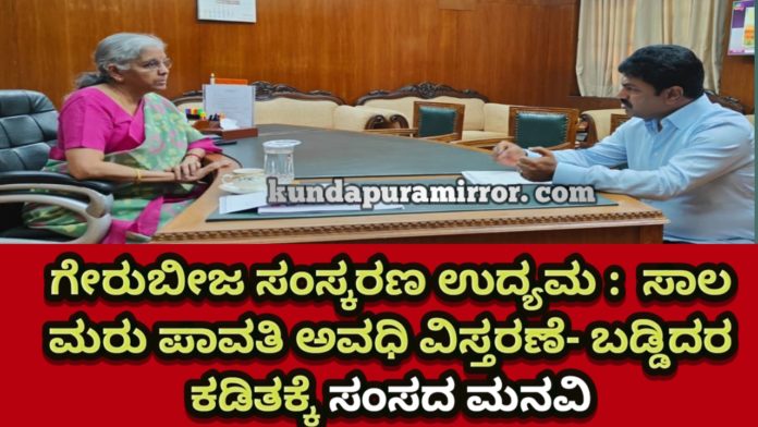 ಕುಂದಾಪುರ: ಕರಾವಳಿ ಭಾಗದ ಗೇರುಬೀಜ ಉದ್ದಿಮೆಗಳು ಆರ್ಥಿಕ ಸಮಸ್ಯೆಗಳನ್ನು ಎದುರಿಸುತ್ತಿರುವ ಹಿನ್ನೆಲೆಯಲ್ಲಿ ಉದ್ಯಮಿಗಳ ಸಮಸ್ಯೆಗೆ ಸ್ಪಂದಿಸುವಂತೆ ಕೇಂದ್ರ ಸರ್ಕಾರದ ಹಣಕಾಸು ಸಚಿವೆ ನಿರ್ಮಲಾ ಸೀತಾರಾಮನ್ ಅವರಿಗೆ ಶಿವಮೊಗ್ಗ ಸಂಸದ ಬಿ.ವೈ ರಾಘವೇಂದ್ರ ಮನವಿ ಮಾಡಿದ್ದಾರೆ.
