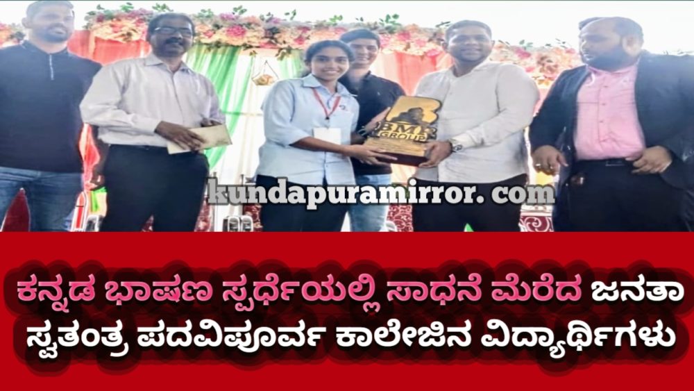 ಕುಂದಾಪುರ :ಬಿಎಮ್ಆರ್ ಬಿಲ್ಡರ್ಸ & ಡೆವಲಪರ್ಸ(BMR BUILDERS & DEVELOPERS)ಮಂಗಳೂರು ಇವರ ವತಿಯಿಂದ 76ನೇ ಸ್ವಾತಂತ್ರ್ಯ ದಿನಾಚರಣೆಯ ಅಂಗವಾಗಿ ಉಡುಪಿ ಹಾಗೂ ದಕ್ಷಿಣ ಕನ್ನಡ ಜಿಲ್ಲೆಯ ವಿದ್ಯಾರ್ಥಿಗಳಿಗಾಗಿ “ನನ್ನ ಕಲ್ಪನೆಯ ಭಾರತ” ಈ ವಿಷಯದ ಕುರಿತಾಗಿ ಆಯೋಜಿಸಿದ ಕನ್ನಡ ಭಾಷಣ ಸ್ಪರ್ಧೆಯಲ್ಲಿ ಹೆಮ್ಮಾಡಿ ಜನತಾ ಸ್ವತಂತ್ರ ಪದವಿಪೂರ್ವ ಕಾಲೇಜಿನ ಪ್ರಥಮ ಪಿ.ಯು.ಸಿ.ವಿಜ್ಞಾನ ವಿಭಾಗದ ವಿದ್ಯಾರ್ಥಿನಿ ಶ್ರುತಿಕಾ ಉಭಯ ಜಿಲ್ಲೆಗೆ ದ್ವಿತೀಯ ಸ್ಥಾನ ಹಾಗೂ ದ್ವಿತೀಯ ಪಿ.ಯು.ಸಿ.ವಿಜ್ಞಾನ ವಿಭಾಗದ ವರ್ಷಾ ರವಿಶಂಕರ್ ಚತುರ್ಥ ಸ್ಥಾನ ಪಡೆದಿರುತ್ತಾರೆ. ವಿವಿಧ ಕಾಲೇಜುಗಳಿಂದ 110 ಸ್ಪರ್ಧಿಗಳು ಭಾಗವಹಿಸಿದ ಸ್ಪರ್ಧೆ ಇದಾಗಿತ್ತು. ವಿದ್ಯಾರ್ಥಿನಿಯರ ಈ ಸಾಧನೆಗೆ ಕಾಲೇಜಿನ ಆಡಳಿತ ಮಂಡಳಿ ಪ್ರಾಂಶುಪಾಲರು, ಬೋಧಕ/ಬೋಧಕೇತರ ವೃಂದದವರು ಅಭಿನಂದನೆ ಸಲ್ಲಿಸಿದ್ದಾರೆ.