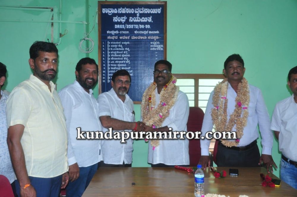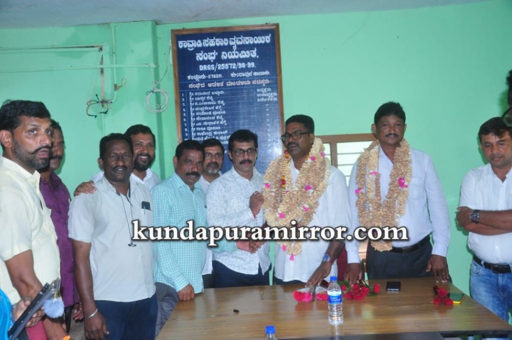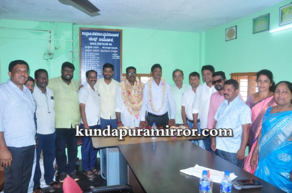 ಕುಂದಾಪುರ : ಕಾವ್ರಾಡಿ ಸಹಕಾರಿ ವ್ಯವಸಾಯಿಕ ಸಂಘದ ಅಧ್ಯಕ್ಷ ಹಾಗೂ ಉಪಾಧ್ಯಕ್ಷರ ಆಯ್ಕೆ ಪಕ್ರಿಯೆ ಶುಕ್ರವಾರ ಬೆಳಿಗ್ಗೆ ಸಂಘದ ಪ್ರಧಾನ ಕಛೇರಿಯಲ್ಲಿ ನಡೆಯಿತು. ನೂತನ ಅಧ್ಯಕ್ಷರಾಗಿ ಸದಾನಂದ ಮೊಗವೀರ ಬಳ್ಕೂರು ಹಾಗೂ ಉಪಾಧ್ಯಕ್ಷರಾಗಿ ಭಾಸ್ಕರ್ ಶೆಟ್ಟಿ ಆಯ್ಕೆಯಾದರು.