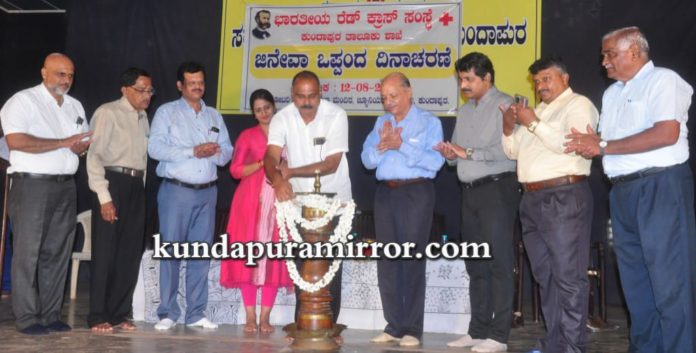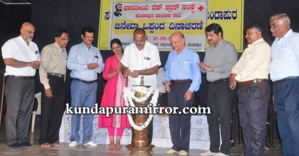 ಅವರು ಶನಿವಾರ ಇಲ್ಲಿನ ಬೋರ್ಡ್ ಹೈಸ್ಕೂಲಿನ ಕಲಾಮಂದಿರದಲ್ಲಿ ರೆಡ್ಕ್ರಾಸ್ ಸಂಸ್ಥೆಯ ಕುಂದಾಪುರ ಘಟಕದ ಆಶ್ರಯದಲ್ಲಿ ನಡೆದ ಜಿನೇವಾ ಒಪ್ಪಂದ ದಿನಾಚರಣೆಯನ್ನು ಉದ್ಘಾಟಿಸಿ ಮಾತನಾಡಿದರು.