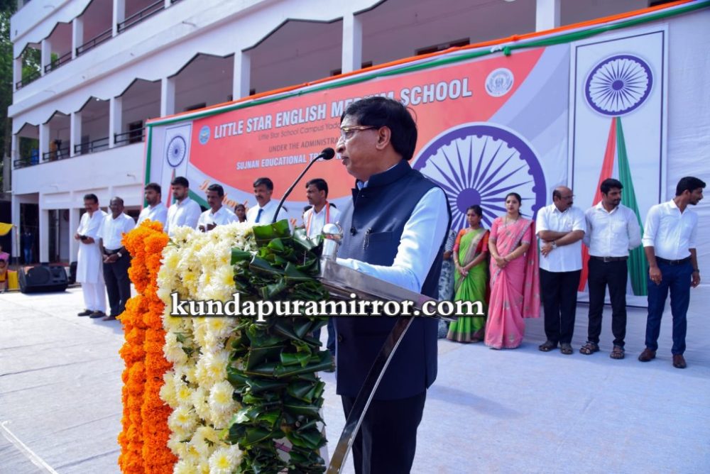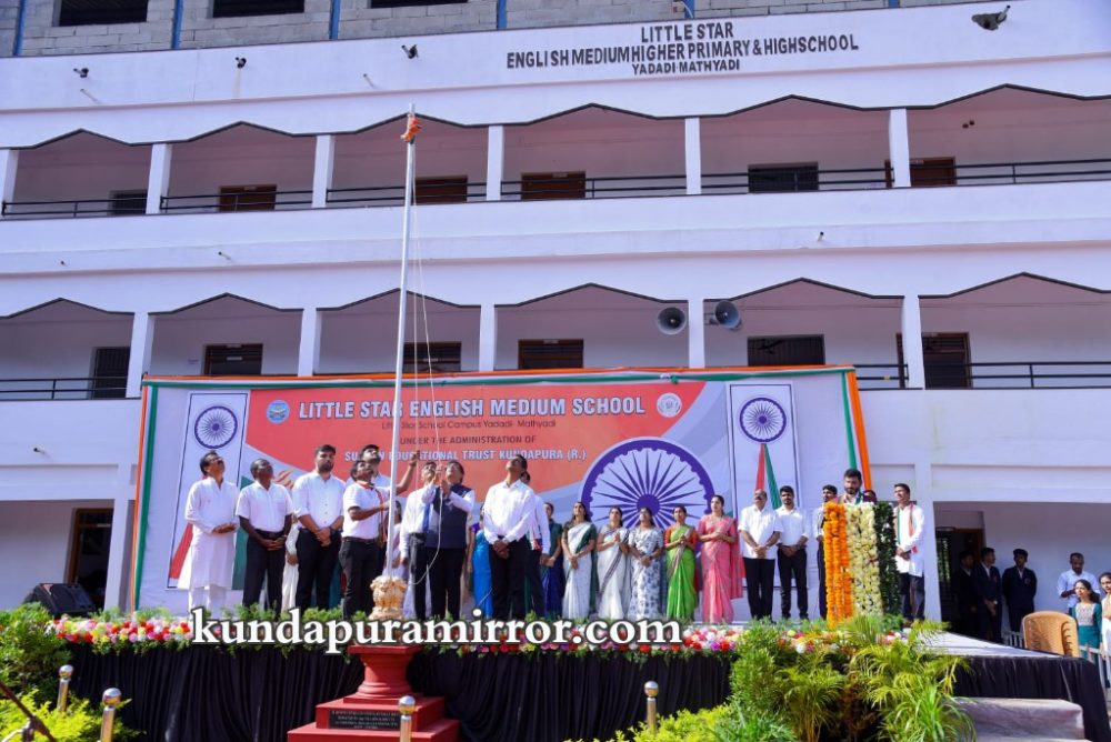 ಕುಂದಾಪುರ :ಯಡಾಡಿ-ಮತ್ಯಾಡಿಯ ಲಿಟ್ಲ್ ಸ್ಟಾರ್ ಆಂಗ್ಲ ಮಾಧ್ಯಮ ಶಾಲೆಯಲ್ಲಿ 77ನೇ ಸ್ವಾತಂತ್ರ್ಯ ದಿನಾಚರಣೆಯನ್ನು ಸಡಗರ -ಸಂಭ್ರಮದಿಂದ ಆಚರಿಸಲಾಯಿತು. ಕಾರ್ಯಕ್ರಮದ ಮುಖ್ಯ ಅತಿಥಿಯಾಗಿ ಕರ್ನಾಟಕ ರಾಜ್ಯ ವಿಧಾನ ಪರಿಷತ್ತಿನ ಸದಸ್ಯರಾದ ಎಸ್.ಎಲ್ ಭೋಜೆಗೌಡರು ಆಗಮಿಸಿದ್ದು, ವಿಶೇಷ ಪಥ ಸಂಚಲನದ ಮೂಲಕ ವೇದಿಕೆಗೆ ಶಾಲಾ ಆಡಳಿತ ಮಂಡಳಿಯ ಸಹಭಾಗಿತ್ವದೊಂದಿಗೆ ಕರೆ ತರಲಾಯಿತು.