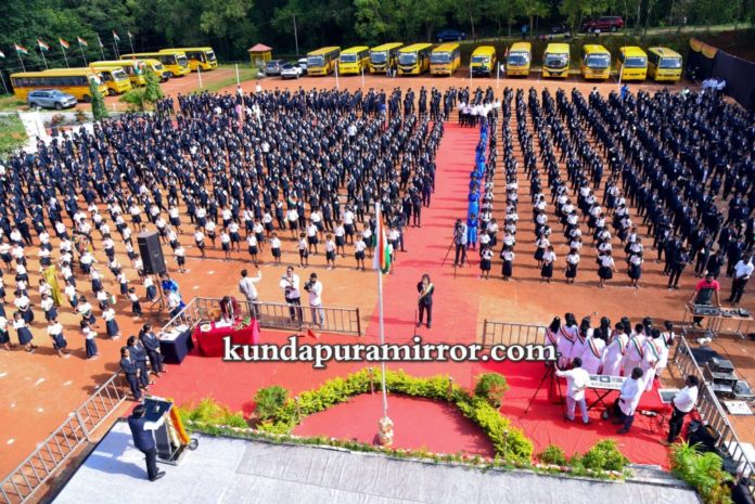ಮುಖ್ಯ ಅತಿಥಿಗಳಾಗಿ ಭಾಗವಹಿಸಿದ ಎಸ್. ಎಲ್ ಭೋಜೇಗೌಡರು ಧ್ವಜಾರೋಹಣಗೈದು ವಿದ್ಯಾರ್ಥಿಗಳನ್ನು ಉದ್ದೇಶಿಸಿ “ಸ್ವಾತಂತ್ರ್ಯ ದಿನಾಚರಣೆಯ ಮಹತ್ವ, ಮುಂದಿನ ಭವ್ಯ ಭಾರತದ ಪ್ರಜೆಗಳಾಗುವ ವಿದ್ಯಾರ್ಥಿಗಳಿಗೆ ದೇಶಕಟ್ಟುವ ಕಾಯಕದ ಕುರಿತು ಅರಿವು ಮೂಡಿಸಿದರು. ಸ್ವಾತಂತ್ರ್ಯಕ್ಕಾಗಿ ಹೋರಾಡಿದ ಶ್ರೇಷ್ಠ ನಾಯಕರ ಗುಣಗಾನ ಮಾಡಿ, ಭಾರತೀಯರಾದ ನಾವೆಲ್ಲರೂ ಒಂದೇ, ನಾವೆಲ್ಲರೂ ಈ ದೇಶದ ಸಂವಿಧಾನದ ಅಡಿಯಲ್ಲಿ ಸಮಾನರೆಂದು ಭಾವಿಸಿ ಬಲಿಷ್ಠ ಭಾರತ ನಿರ್ಮಾಣ ಮಾಡೋಣ. ವಿದ್ಯಾರ್ಥಿಗಳು ಪ್ರತಿಯೊಂದು ರಾಷ್ಟ್ರೀಯ ಹಬ್ಬದಲ್ಲಿ ಪಾಲ್ಗೊಂಡು ರಾಷ್ಟ್ರ ಪ್ರೇಮ, ರಾಷ್ಟ್ರ ಭಕ್ತಿ, ಬೆಳೆಸಿಕೊಂಡು ಭಾರತದ ಸತ್ಪ್ರಜೆಯಾಗಿ ಬೆಳೆಯಬೇಕೆಂದು ಹೇಳುತ್ತಾ, ಕುವೆಂಪುರವರ ವಿಶ್ವ ಮಾನವ ಗೀತೆಯ ಸಂದೇಶವನ್ನು ಸಾರಿದರು. ‘ವಿಜಯಿ ವಿಶ್ವತಿ ರಂಗಾ ಪ್ಯಾರ ‘ಎಂಬ ಹಾಡಿಗೆ ನೆರೆದ 1500 ಕ್ಕೂ ಹೆಚ್ಚು ವಿದ್ಯಾರ್ಥಿಗಳು ರಾಷ್ಟ್ರ ಧ್ವಜವನ್ನು ಕೈಯಲ್ಲಿ ಹಿಡಿದು ಸಂಭ್ರಮಿಸಿದರು.