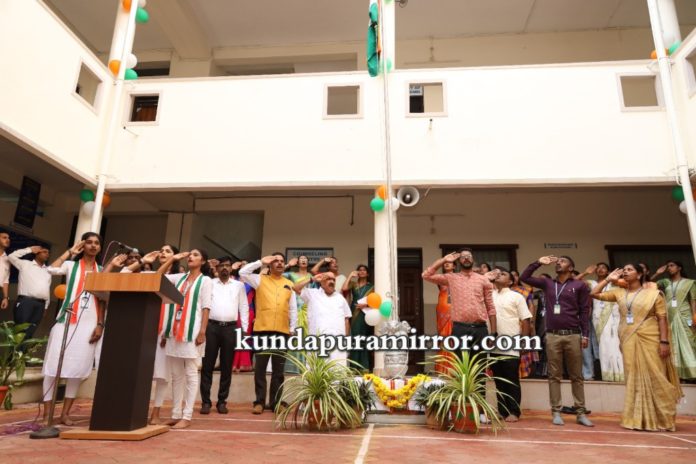 ಕುಂದಾಪುರ: ಇಲ್ಲಿನ ಡಾ| ಬಿ. ಬಿ. ಹೆಗ್ಡೆ ಪ್ರಥಮ ದರ್ಜೆ ಕಾಲೇಜಿನ ಎನ್.ಸಿ.ಸಿ. ಮತ್ತು ಎನ್.ಎಸ್.ಎಸ್. ಘಟಕದಲ್ಲಿ ಆಯೋಜಿಸಿದ 77ನೇ ಸ್ವಾತಂತ್ರ್ಯೋತ್ಸವದ ಧ್ವಜಾರೋಹಣವನ್ನು ಕುಂದಾಪುರ ಎಜ್ಯುಕೇಶನ್ ಸೊಸೈಟಿಯ ಅಧ್ಯಕ್ಷರಾದ ಬಿ. ಎಂ. ಸುಕುಮಾರ ಶೆಟ್ಟಿಯವರು ನೆರವೇರಿಸಿದರು. ಮಾತನಾಡಿ ಶಿಕ್ಷಣದಿಂದ ರಾಷ್ಟ್ರಪ್ರೇಮವನ್ನು ಬೆಳೆಸುವ ಮೂಲಕ ಸಧೃಡ ಭಾರತ ನಿರ್ಮಾಣ ಸಾಧ್ಯ ಎಂದು ಹೇಳಿದರು.