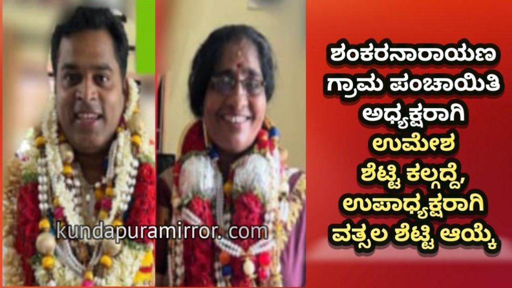 ಕುಂದಾಪುರ: ಶಂಕರನಾರಾಯಣ ಗ್ರಾಮ ಪಂಚಾಯಿತಿ ಅಧ್ಯಕ್ಷರಾಗಿ ಬಿಜೆಪಿ ಬೆಂಬಲಿತ ಉಮೇಶ ಶೆಟ್ಟಿ ಕಲ್ಗದ್ದೆ ಅವಿರೋಧವಾಗಿ ಆಯ್ಕೆಯಾಗಿದ್ದಾರೆ. ಉಪಾಧ್ಯಕ್ಷರಾಗಿ ಬಿಜೆಪಿ ಬೆಂಬಲಿತರಾದ ವತ್ಸಲ ಶೆಟ್ಟಿ ಅವಿರೋಧವಾಗಿ ಆಯ್ಕೆಯಾಗಿದ್ದಾರೆ.