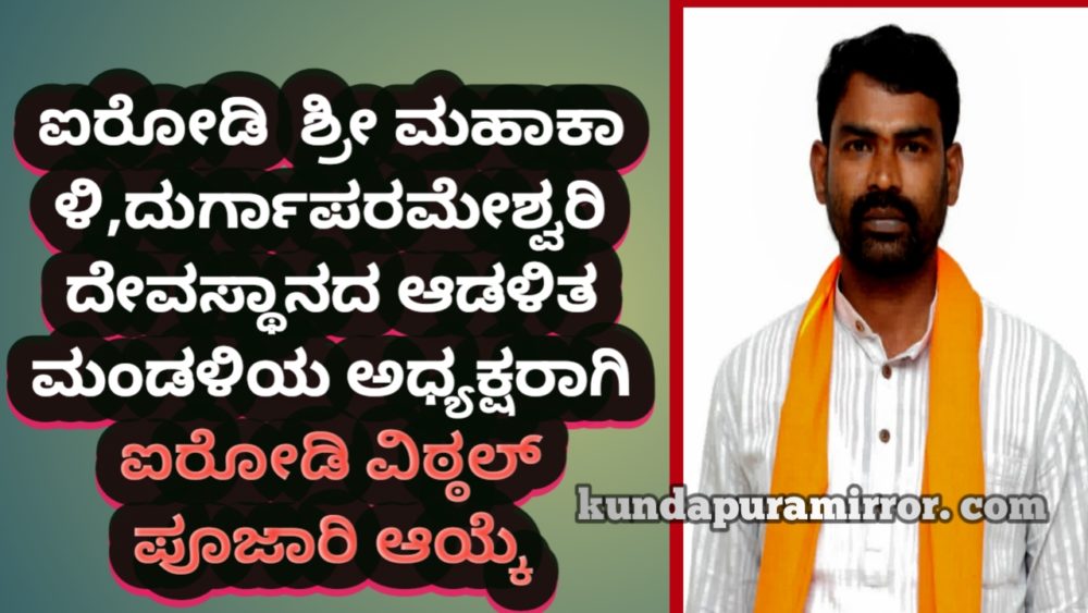 ಕೋಟ: ಐರೋಡಿ ಅಲ್ಸೆಬೆಟ್ಟು ಶ್ರೀ ಮಹಾಕಾಳಿ ಮತ್ತು ಶ್ರೀ ದುರ್ಗಾಪರಮೇಶ್ವರಿ ದೇವಸ್ಥಾನ ಇದರ ನೂತನ ಆಡಳಿತ ಮಂಡಳಿಯ ಅಧ್ಯಕ್ಷರಾಗಿ ಐರೋಡಿ ವಿಠ್ಠಲ್ ಪೂಜಾರಿ ಆಯ್ಕೆಯಾಗಿದ್ದಾರೆ.