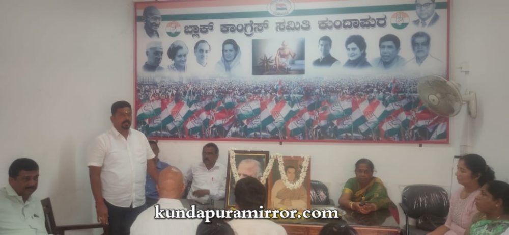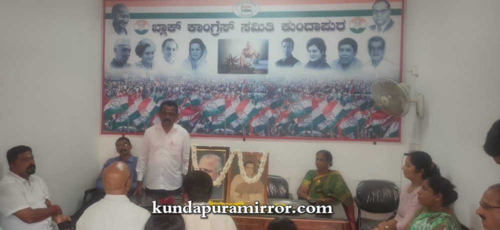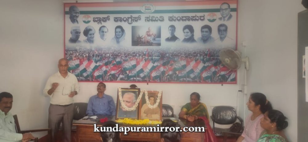 ಕುಂದಾಪುರ :ಮಾಹಿತಿ ತಂತ್ರಜ್ಞಾನದಲ್ಲಿ ಜಗತ್ತೇ ಭಾರತವನ್ನು ಅವಲಂಬಿಸುವಂತೆ ಸನ್ನಿವೇಶ ಬಂದಿರುವುದು ಮಾಜಿ ಪ್ರಧಾನಿ ದಿ. ರಾಜೀವ್ ಗಾಂಧಿ ಅವರ ಆಡಳಿತದ ದೂರದೃಷ್ಟಿಯ ನಿರ್ಣಯಗಳು ಮತ್ತು ಸ್ವಾತಂತ್ರ್ಯ ನಂತರದ ದಿನಗಳಲ್ಲಿ ಭೂ ಸುಧಾರಣೆಗೆ ಕೇಂದ್ರ ಸರಕಾರ ತೆಗೆದುಕೊಂಡ ನಿರ್ಣಯಗಳನ್ನು ರಾಜ್ಯದಲ್ಲಿ ದಿಟ್ಟವಾಗಿ ಜಾರಿಗೊಳಿಸಿದ ಮಾಜಿ ಮುಖ್ಯಮಂತ್ರಿ ದೇವರಾಜ ಅರಸ್ ಇಂದು ದೇಶಕ್ಕೆ ಮಾದರಿ ಎಂದು ಬ್ಲಾಕ್ ಕಾಂಗ್ರೆಸ್ ಕಿಸಾನ್ ಘಟಕದ ಅಧ್ಯಕ್ಷರಾದ ಭಾಸ್ಕರ್ ಶೆಟ್ಟಿ ಅವರು ತಿಳಿಸಿದರು.