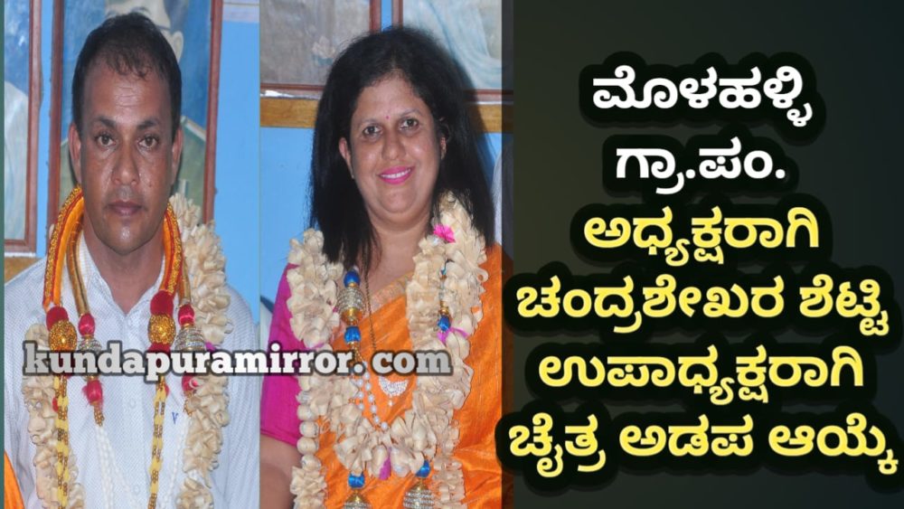 ಕುಂದಾಪುರ : ಮೊಳಹಳ್ಳಿ ಗ್ರಾ.ಪಂ. ಅಧ್ಯಕ್ಷರಾಗಿ ಕಾಂಗ್ರೆಸ್ ಬೆಂಬಲಿತರಾದ ಚಂದ್ರಶೇಖರ ಶೆಟ್ಟಿ ಉಪಾಧ್ಯಕ್ಷರಾಗಿ ಚೈತ್ರ ಅಡಪ ಅವಿರೋಧವಾಗಿ ಆಯ್ಕೆಯಾಗಿದ್ದಾರೆ.