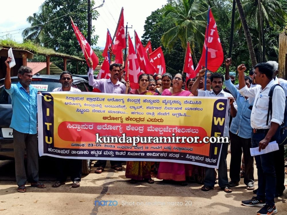 ಸಿಐಟಿಯು ಜಿಲ್ಲಾ ಪ್ರಧಾನ ಕಾರ್ಯದರ್ಶಿ ಸುರೇಶ್ ಕಲ್ಲಾಗರ ಮಾತನಾಡಿ ಜಿಲ್ಲೆಯಲ್ಲಿ ಪ್ರಮುಖವಾಗಿ ಬೆಳೆಯುತ್ತಿರುವ ಸಿದ್ದಾಪುರ ಜನತೆಗೆ ಮೂಲಭೂತ ಸೌಕರ್ಯವಾಗಿರುವ ಆರೋಗ್ಯ ಸೇವೆಯನ್ನು ಸರಕಾರ ನಿರಂತರವಾಗಿ ಕಡೆಗಣಿಸಿದೆ. ದಿನ ನಿತ್ಯ ಸುತ್ತಲ ಹಳ್ಳಿಗಳಿಂದ ನೂರಾರು ರೋಗಿಗಳು ಕೇಂದ್ರಕ್ಕೆ ಬರುತ್ತಿದ್ದರೂ ವೈದ್ಯರು ವಾರದ ಕೆಲವೇ ದಿನಗಳು ಮಾತ್ರ ಲಭ್ಯ ಇರುವುದರಿಂದ ಗ್ರಾಮಸ್ಥರಿಗೆ ತೊಂದರೆಯಾಗುತ್ತಿದೆ. ಸಂಜೆ 4.30 ಗಂಟೆ ಆಗುತ್ತಿದ್ದಂತೆ ಕೇಂದ್ರ ಮುಚ್ಚುತ್ತಿರುವುದು ರಾತ್ರಿ ಹೊತ್ತು ತುರ್ತು ಚಿಕಿತ್ಸೆ ಸಿಗದಿರುವುದು ದೂರದ 30 ಕಿಮೀ ಕುಂದಾಪುರಕ್ಕೆ ಹೋಗುವ ಸ್ಥಿತಿ ಜನರ ಪ್ರಾಣಕ್ಕೆ ಸಂಚಕಾರ ಬಂದಿದೆ ಎಂದು ಅವರು ಹೇಳಿದರು.