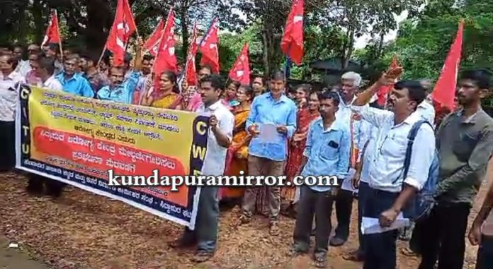ಸಿಐಟಿಯು ಜಿಲ್ಲಾ ಮುಖಂಡರಾದ ಮಹಾಬಲ ವಡೇರಹೋಬಳಿ, ಕೆಲಸಗಾರರ ಸಂಘದ ಗಿರಿಜ ಆಚಾರ್,ಗಿರೀಜ ಶೆಡ್ತಿ,ಶಾರದ, ವೆಂಕಟೇಶ್ ಹೊಸಂಗಡಿ, ರತ್ನಾಕರ ಸಿದ್ದಾಪುರ, ವಿಠಲ,ಕ್ರಷ್ಣ ಪೂಜಾರಿ, ಜ್ಯೋತಿ,ಚಂದ್ರ ಕುಲಾಲ್ ಮೂಡುಬಗೆ ಮೊದಲಾದವರು ಇದ್ದರು.