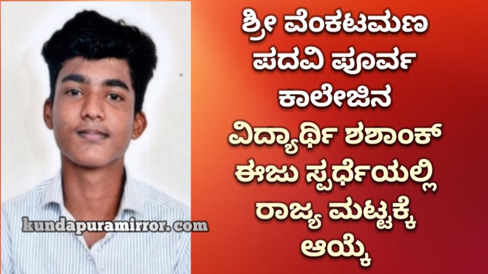 ಕುಂದಾಪುರ : ಉಡುಪಿ ಜಿಲ್ಲಾ ಪದವಿ ಪೂರ್ವ ಶಿಕ್ಷಣ ಇಲಾಖೆ ಹಾಗೂ ಎಂ .ಜಿ. ಎಂ ಕಾಲೇಜು ಉಡುಪಿ ಇವರ ಜಂಟಿ ಆಶ್ರಯದಲ್ಲಿ ಆ.24ರಂದು ಮಣಿಪಾಲ್ ಮರೀನಾ ಸ್ಪೋಟ್ಸ್ ಕ್ಲಬ್ ನಲ್ಲಿ ನಡೆದ ಈಜು ಸ್ಪರ್ಧೆಯಲ್ಲಿ ಶ್ರೀ ವೆಂಕಟಮಣ ಪದವಿ ಪೂರ್ವ ಕಾಲೇಜಿನ ವಿದ್ಯಾರ್ಥಿ ಶಶಾಂಕ್ (Breast Stroke) ನಲ್ಲಿ ಪ್ರಥಮ ಸ್ಥಾನ ಪಡೆದುಕೊಳ್ಳುವುದರ ಮೂಲಕ ರಾಜ್ಯ ಮಟ್ಟಕ್ಕೆ ಆಯ್ಕೆಯಾಗಿದ್ದಾರೆ.