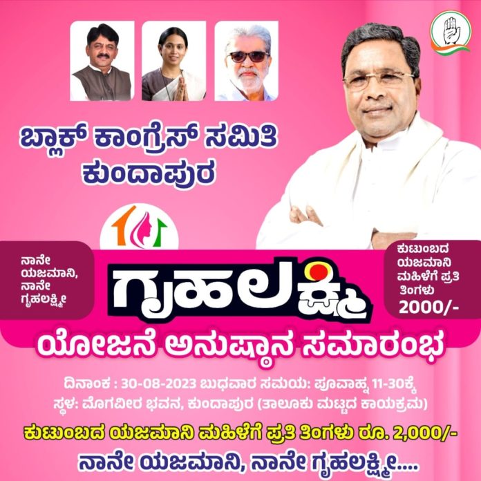 ಕುಂದಾಪುರ :ರಾಜ್ಯದಲ್ಲಿರುವ ಮಹಿಳೆಯರ ಆರ್ಥಿಕ ಸಬಲೀಕರಣದ ಉದ್ದೇಶದಿಂದ ಕುಟುಂಬದ ಯಜಮಾನಿ ಮಹಿಳೆಗೆ ಪ್ರತಿ ತಿಂಗಳು ತಲ ರೂ. 2000/- ಗಳನ್ನು ನೀಡುವ ಗ್ರಹಲಕ್ಷ್ಮಿ ಯೋಜನೆಯನ್ನು ಕರ್ನಾಟಕದ ಸರ್ಕಾರ ಜಾರಿಗೆ ತಂದಿದೆ. ಈಗಾಗಲೇ ಯೋಜನೆಯಡಿ ನೋಂದಣಿ ಯಾಗಿರುವ ಫಲಾನುಭೂಮಿಗಳಿಗೆ ಅಗಸ್ಟ್ 30ರಂದು ಮೈಸೂರಿನಲ್ಲಿ ಗ್ರಹಲಕ್ಷ್ಮೀ ಯೋಜನೆಯನ್ನು ಮಾನ್ಯ ಮುಖ್ಯ ಮಂತ್ರಿಗಳು ಲೋಕಾರ್ಪಣೆ ಗೊಳಿಸಲಿದ್ದು, ಸದರಿ ಕಾರ್ಯಕ್ರಮಕ್ಕೆ ಎಲ್ಲಾ ಫಲಾನುಭೂಮಿಗಳು, ಸಾರ್ವಜನಿಕರು ,ಭಾಗಿಯಾಗಲು ಬ್ಲಾಕ್ ಕಾಂಗ್ರೆಸ್ ಕುಂದಾಪುರ ವ್ಯಾಪ್ತಿಯ ವಾರ್ಡ್ ಹಂತದಲ್ಲಿ ವ್ಯವಸ್ಥೆಯನ್ನು ಕಲ್ಪಿಸಲಾಗಿದೆ. ಈ ಕಾರ್ಯಕ್ರಮವನ್ನು ವೀಕ್ಷಣೆ ಮಾಡಲು ಟಿ.ವಿ/ ಎಲ್.ಇ.ಡಿ ಪರದೇ ವ್ಯವಸ್ಥಗೊಳಿಸಲಾಗುತ್ತದೆ. ಸದರಿ ಕಾರ್ಯಕ್ರಮಕ್ಕೆ ಸಾರ್ವಜನಿಕರು, ಫಲಾನುಭೂಮಿಗಳು, ಚುನಾಯಿತ ಜನಪ್ರತಿನಿಧಿಗಳು ಹಾಜರಾಗಬೇಕೆಂದು ತಮ್ಮಲ್ಲಿ ವಿನಂತಿಸಿಕೊಳ್ಳಲಾಗಿದೆ.