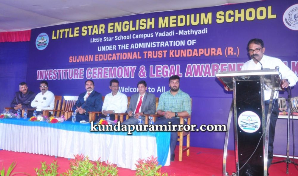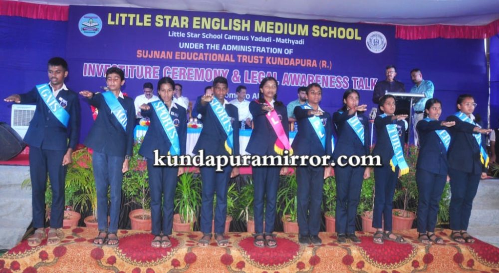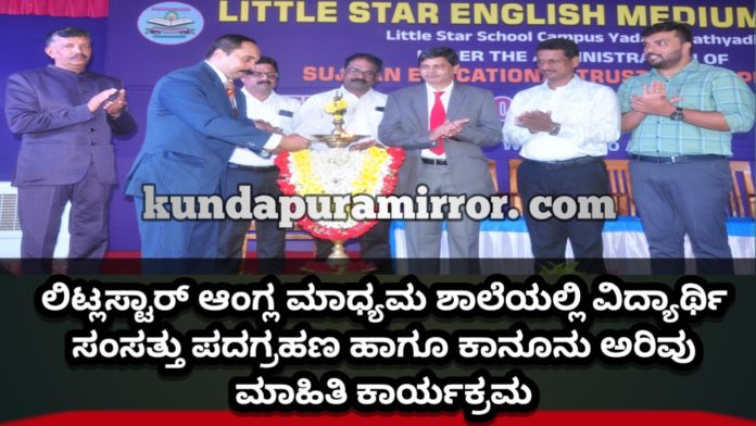 ಕುಂದಾಪುರ :ಸುಜ್ಣಾನ ಎಜ್ಯುಕೇಶನ್ ಟ್ರಸ್ಟ್ ಪ್ರವರ್ತಿತ ಲಿಟ್ಲಸ್ಟಾರ್ ಆಂಗ್ಲ ಮಾಧ್ಯಮ ಶಾಲೆಯಲ್ಲಿ ವಿದ್ಯಾರ್ಥಿ ಸಂಸತ್ತು ಪದಗ್ರಹಣ ಹಾಗೂ ಕಾನೂನು ಅರಿವು ಮಾಹಿತಿ ಕಾರ್ಯಕ್ರಮ ಆ ೨೯ರಂದು ಜರಗಿತು.