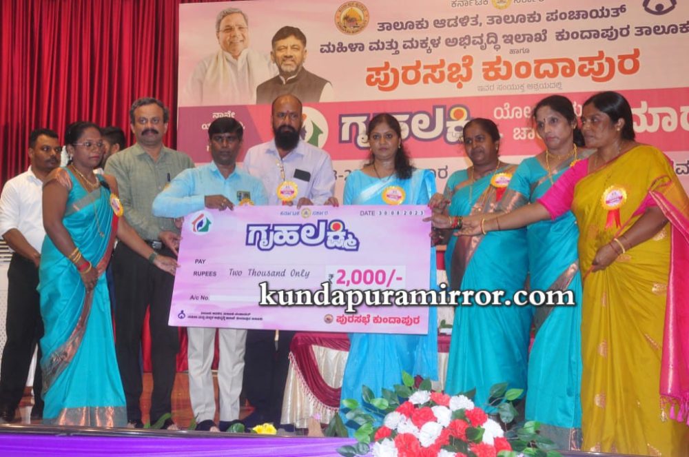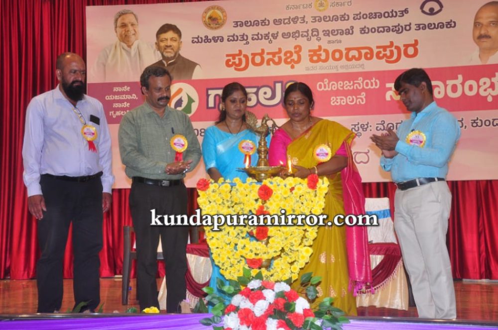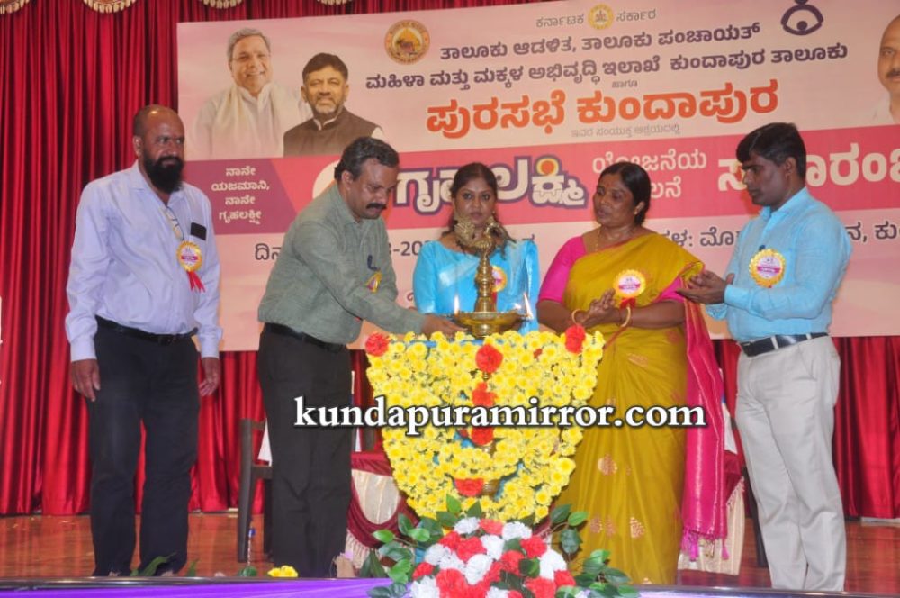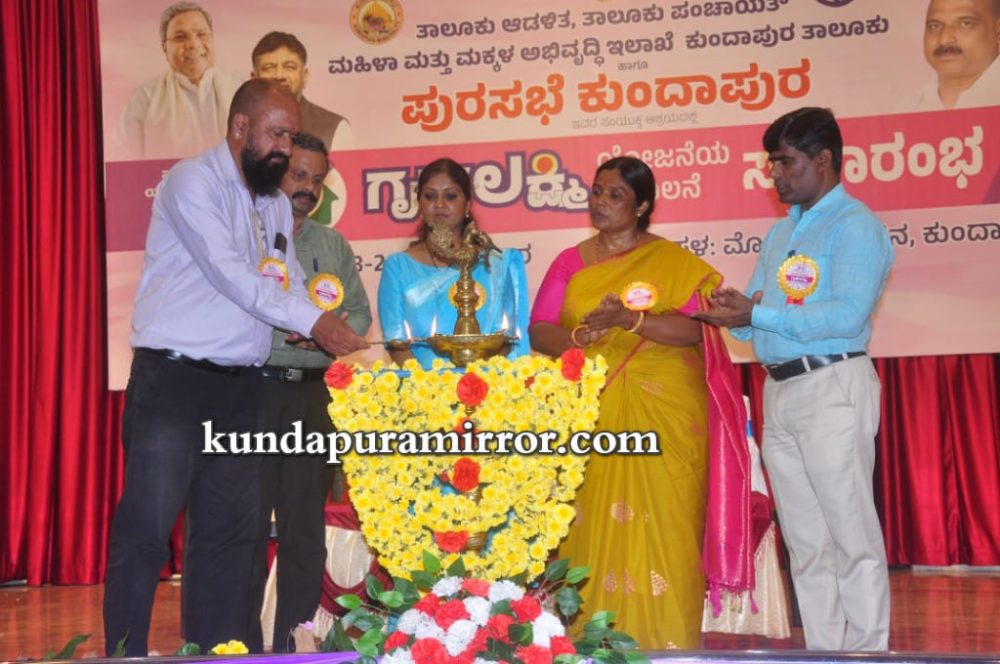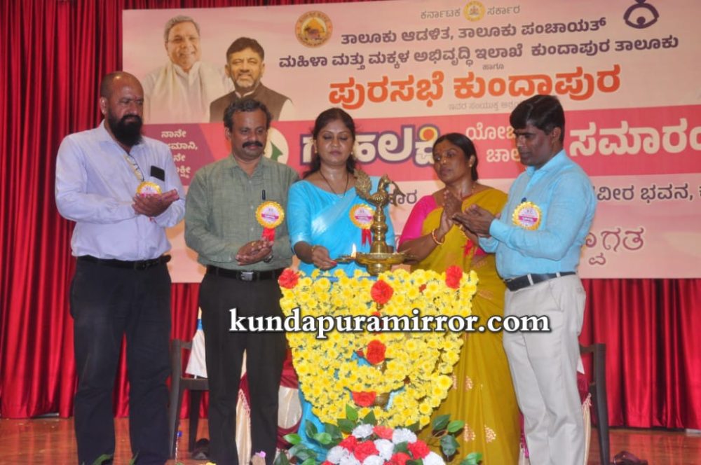 ಕುಂದಾಪುರ: ಇಲ್ಲಿನ ಮೊಗವೀರ ಭವನದಲ್ಲಿ ತಾಲೂಕು ಆಡಳಿತ, ಮಕ್ಕಳ ಅಭಿವೃದ್ದಿ ಇಲಾಖೆ ಕುಂದಾಪುರ ತಾಲೂಕು, ಕುಂದಾಪುರ ಪುರಸಭೆ ವತಿಯಿಂದ ನಡೆದ ಗೃಹಲಕ್ಷ್ಮೀ ಯೋಜನೆಯ ಉದ್ಘಾಟನೆಯನ್ನು ಕುಂದಾಪುರದ ತಹಶೀಲ್ದಾರ್ ಶೋಭಾಲಕ್ಷ್ಮೀ ಉದ್ಘಾಟಿಸಿದರು.