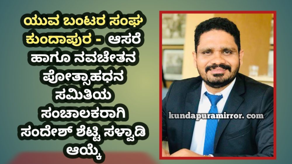 ಕುಂದಾಪುರ: ಕುಂದಾಪುರ ತಾಲೂಕು ಯುವ ಬಂಟರ ಸಂಘದ ವತಿಯಿಂದ ನಡೆಯುವ 2023-24ನೇ ಸಾಲಿನ ತಂದೆ ಅಥವಾ ತಾಯಿಯನ್ನು ಕಳೆದುಕೊಂಡ ಬಂಟ ಸಮುದಾಯದ ವಿದ್ಯಾರ್ಥಿಗಳಿಗೆ ನೀಡಲಾಗುವ ‘ಆಸರೆ’ ಪೋತ್ಸಾಹಧನ ಹಾಗು ವಿಕಲಚೇತನ ವಿದ್ಯಾರ್ಥಿಗಳಿಗೆ ನೀಡಲಾಗುವ ‘ನವಚೇತನ’ ಪೋತ್ಸಾಹಧನದ ಸಮಿತಿಯ ಸಂಚಾಲಕರಾಗಿ ಕುಂದಾಪುರದ ಖ್ಯಾತ ನಿರೂಪಕ ಹಾಗು ಸಿಪ್ಲಾ ಕಂಪನಿಯಲ್ಲಿ ಏರಿಯಾ ಬ್ಯುಸ್ನೆಸ್ ಮ್ಯಾನೇಜರ್ ಆಗಿರುವ ಸಂದೇಶ್ ಶೆಟ್ಟಿ ಸಳ್ವಾಡಿಯವರು ಆಯ್ಕೆಯಾಗಿರುತ್ತಾರೆ.