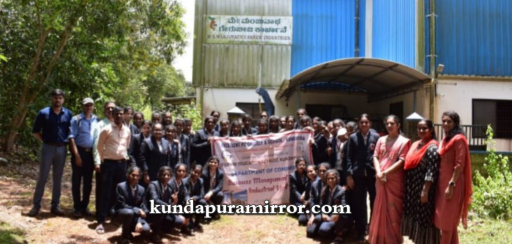 ಆ ಬಳಿಕ ಕುಂದಾಪುರ ದ ತಲ್ಲೂರಿನಲ್ಲಿರುವ ಮೆಟಟ ಮಂಜುನಾಥ ಗೇರು ಬೀಜ ಕಾರ್ಖಾನೆ ಗೆ ಭೇಟಿ ನೀಡಿ ಗೇರು ಬೀಜ ಸಂಸ್ಕರಣೆ ಹಾಗೂ ಸಿದ್ದಗೊಳಿಸಿದ ಉತ್ಪನ್ನದ ವಿವಿಧ ಹಂತಗಳ ಬಗ್ಗೆ ಕಾರ್ಖಾನೆ ಯ ವ್ಯವಸ್ಥಾಪಕ ನಿರ್ದೇಶಕರಾಗಿರುವ ಪ್ರತಾಪ್ ಚಂದ್ರ ಶೆಟ್ಟಿ ಯವರು ವಿದ್ಯಾರ್ಥಿ ಗಳಿಗೆ ಸಮಗ್ರ ಮಾಹಿತಿ ನೀಡಿದರು.